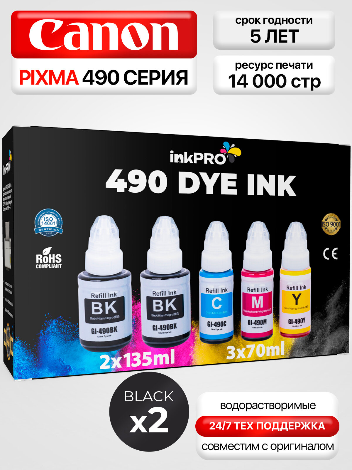 Чернила краска для принтера CANON PIXMA GI-490 4 цвета и 2 черных флакона CANON G1400, G1410, G1411, G1416, G1810, G2010, G2400, G2410, G2411, G2415, G2430, G2810, G2820, G3010, G3020, G3400 и др. интересное:
