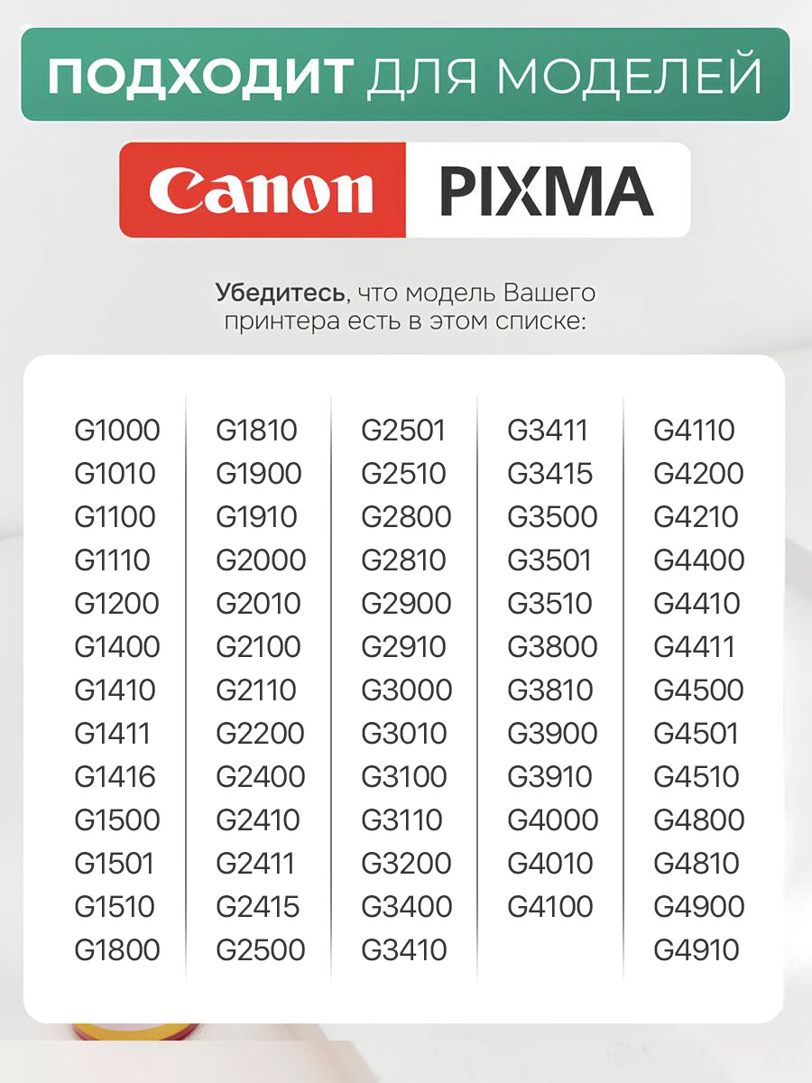 Чернила краска для принтера CANON PIXMA GI-490 4 цвета CANON G1400, G1410, G1411, G1416, G1810, G2010, G2400, G2410, G2411, G2415, G2430, G2810, G2820, G3010, G3020, G3400 и др.