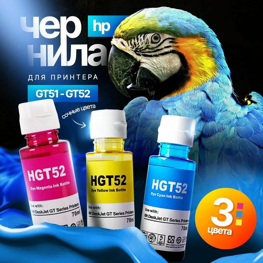Комплект чернил GT52 для HP водные (3 флакона) 3 цветных (C/M/Y) Inkmaster интересное:
