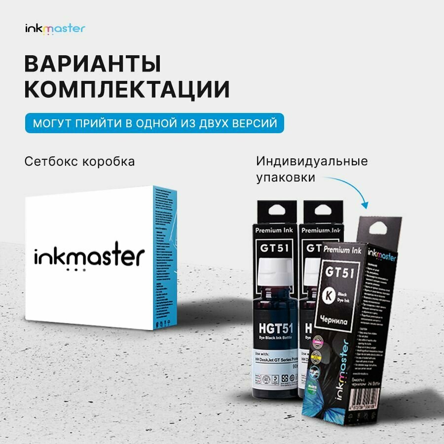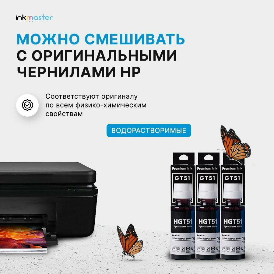 Комплект чернил GT51 для HP водные (3 флакона) 3 черных (Bk/Bk/Bk) Inkmaster интересное: