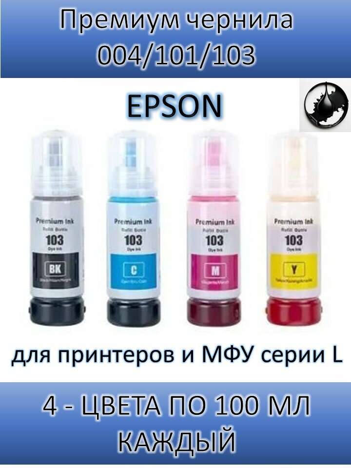 Чернила совместимые для Epson 004, 101,103, Premium комплект 4 цвета по 100 мл интересное: