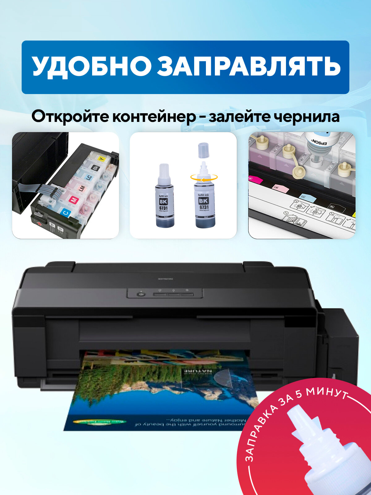 Чернила краска для принтера EPSON 673 по 100 мл эпсон L800, L805, L810, L850, L1800 интересное: