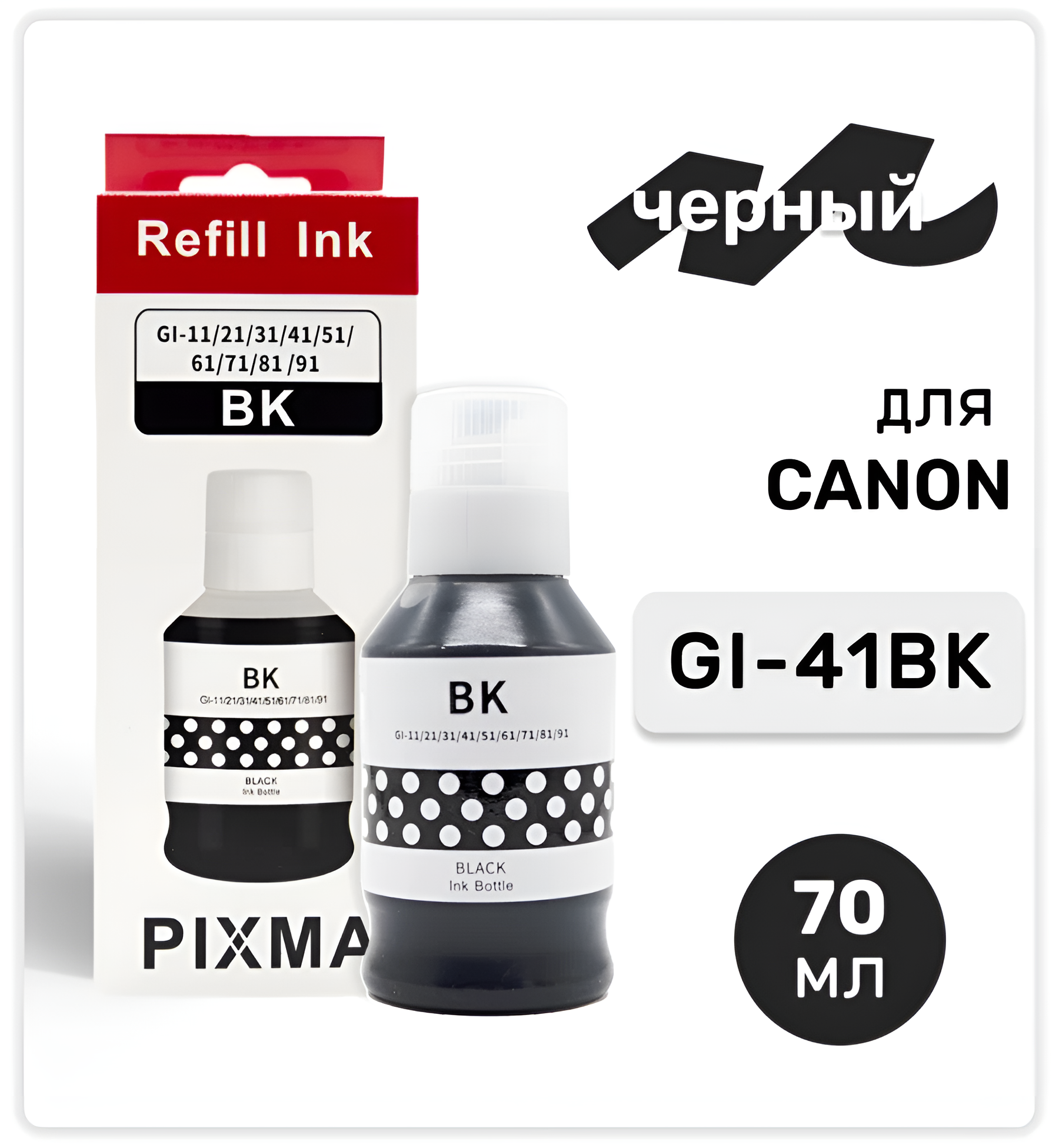 Купить Чернила (краска) GI-41BK черные для заправки струйного принтера Canon PIXMA G1420, G1430, G2420, G3420, водные 135мл
