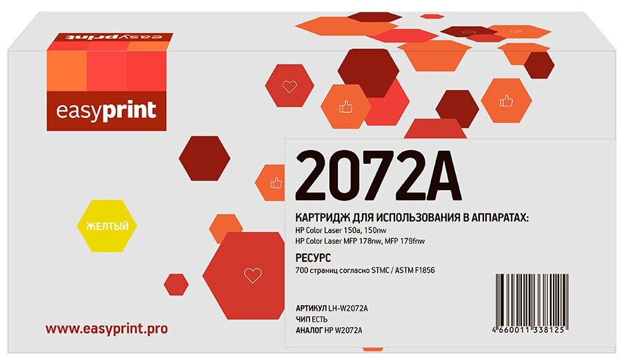 Картридж EasyPrint LH-W2072A Yellow для HP Color Laser 150a , 150nw , MFP 178nw , MFP 179fnw (700 стр.) интересное: