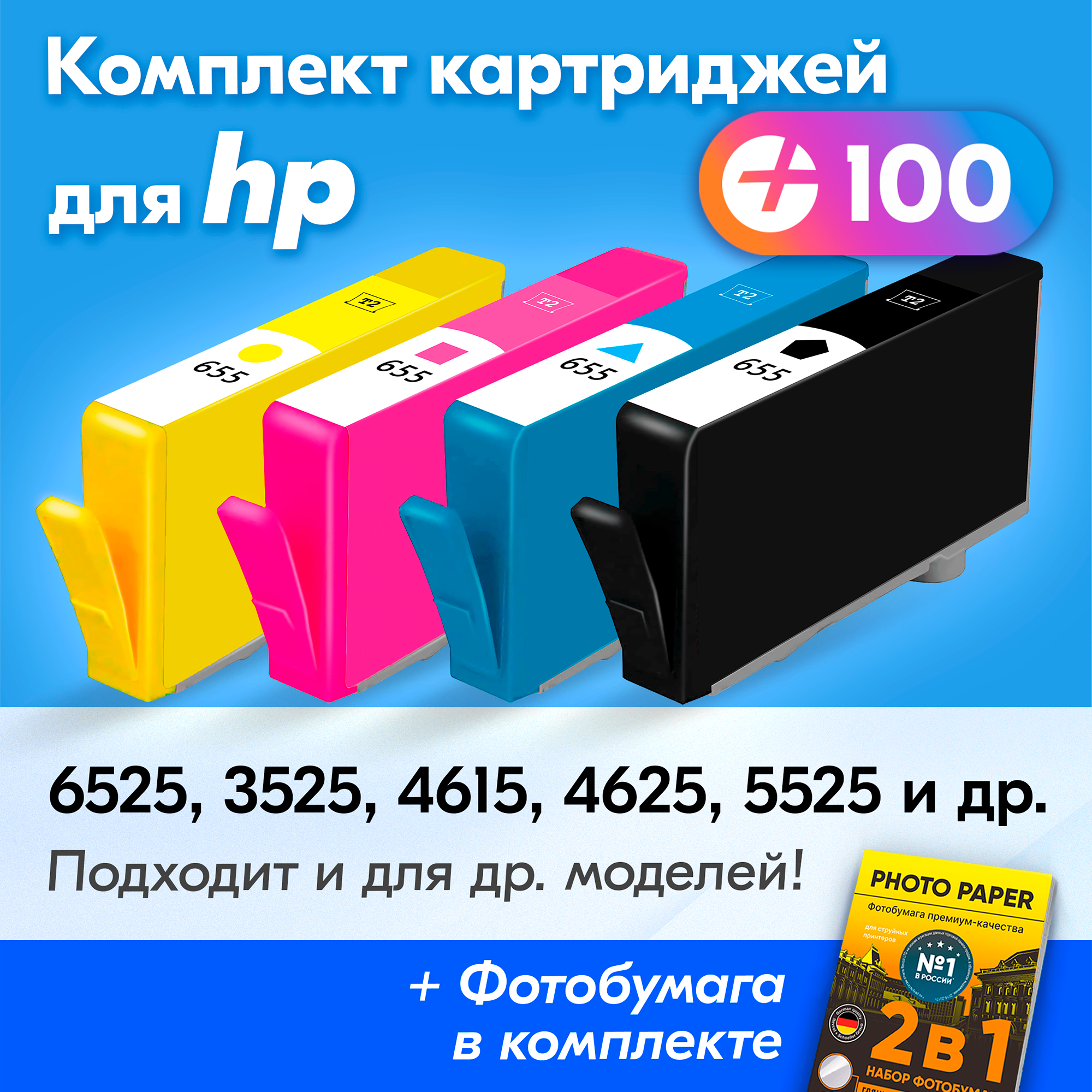 Купить Картриджи для HP 655, HP Deskjet Ink Advantage 6525, 3525, 5525 и др. Черный, Голубой, Пурпурный, Желтый, 4 шт.
