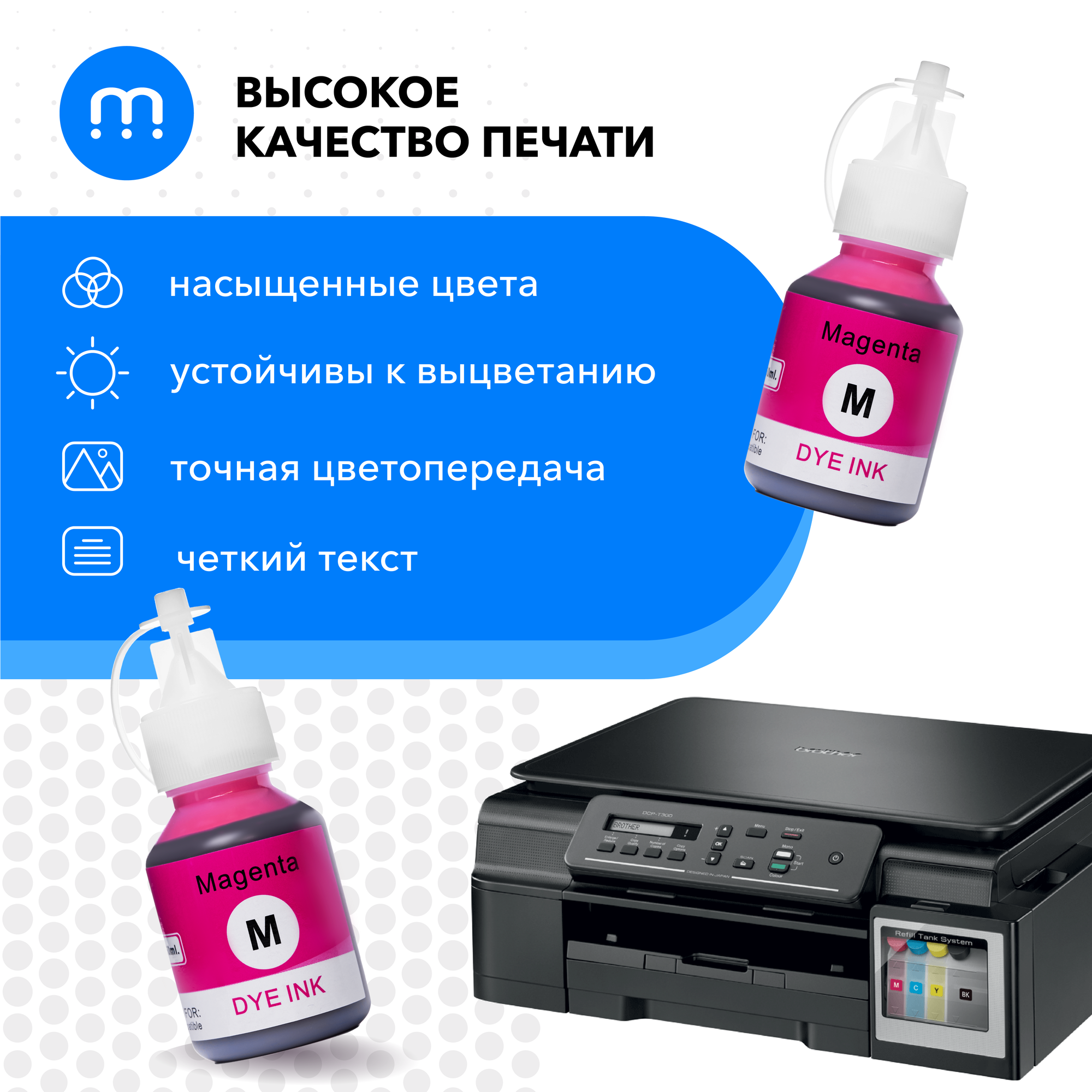 Чернила для Brother, BTD60BK, BT6000BK, BT5000C, BT5000M, BT5000Y, DCP-T220/T225/T300/T310/T420W/T425W/T510W и др.