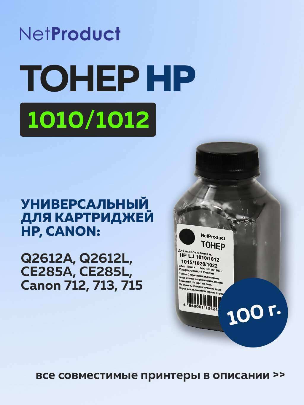 Купить Тонер NetProduct для HP LJ 1010/1012/1015/1020/1022, Bk, 100 г, банка