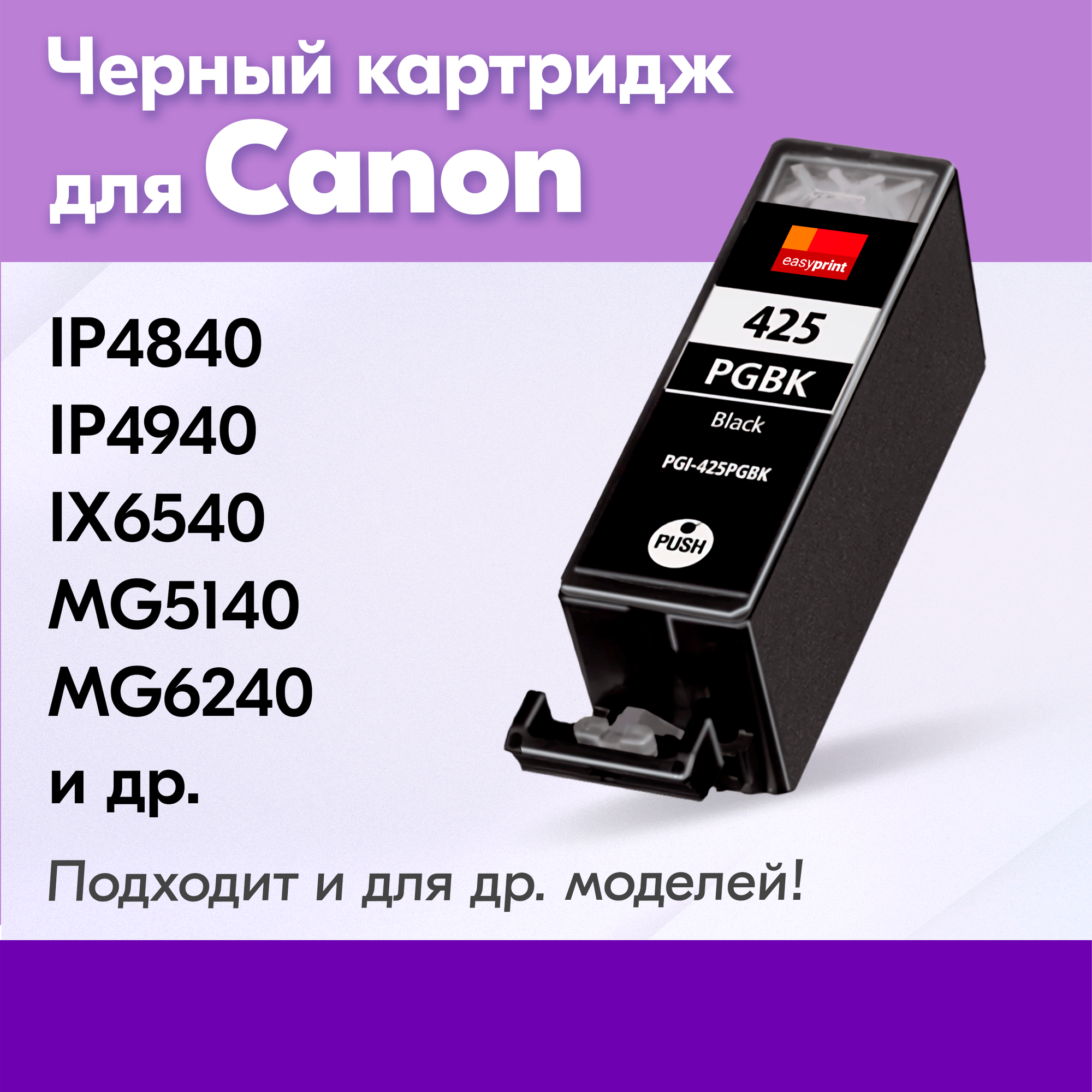 Купить Картридж для Canon PGI-425, Canon PIXMA iP4840, MG6140, MG6240, MG5340, MG5140, MG5240 и др. с чернилами, 1 шт, Черный (Black)