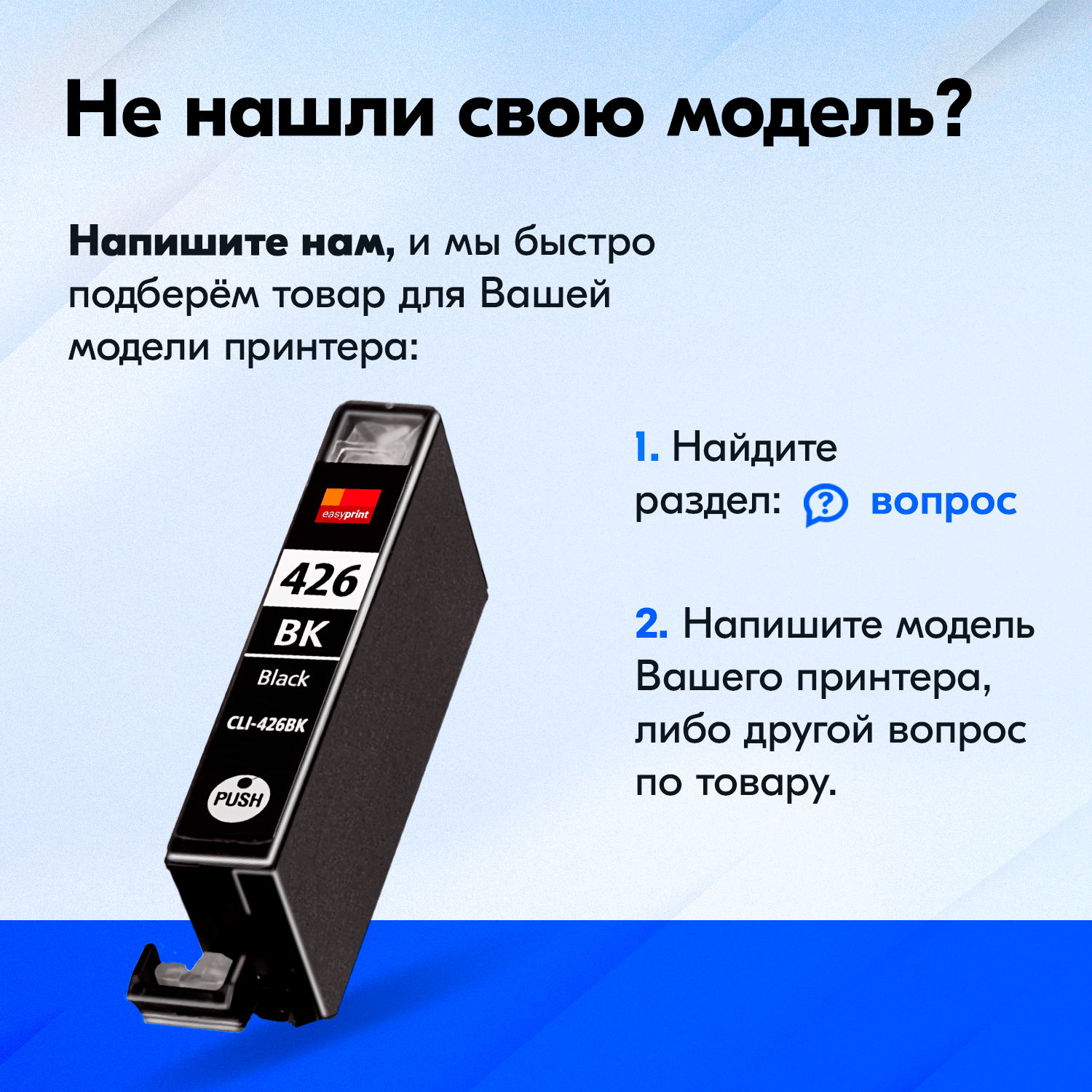 Ниже Вы можете прочитать отзывы на Картридж для Canon CLI-426Bk, Canon PIXMA iP4840, MG6140, MG6240, MG5340, MG5140, MG5240, iX6540, MX714, MX894 и др. с чернилами, 1 шт., ознакомится с подробными характеристиками, посмотреть интересные обзоры и фотографии на Картридж для Canon CLI-426Bk, Canon PIXMA iP4840, MG6140, MG6240, MG5340, MG5140, MG5240, iX6540, MX714, MX894 и др. с чернилами, 1 шт..