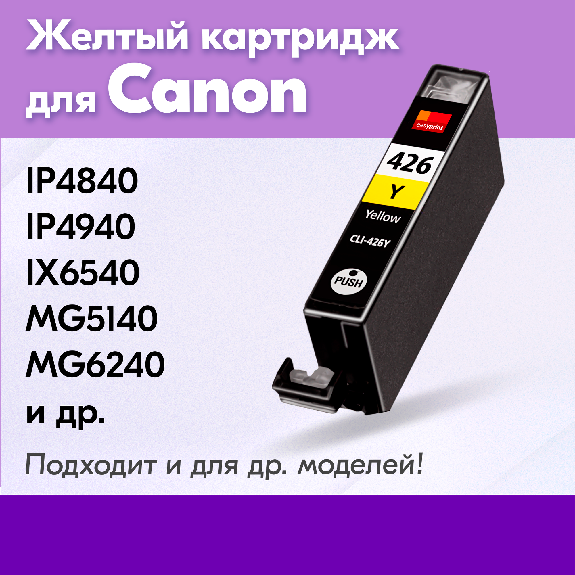 Купить Картридж для Canon CLI-426Y, Canon PIXMA iP4840, MG6140, MG6240, MG5340, MG5140, MG5240, Желтый (Yellow), увеличенный объем, заправляемый