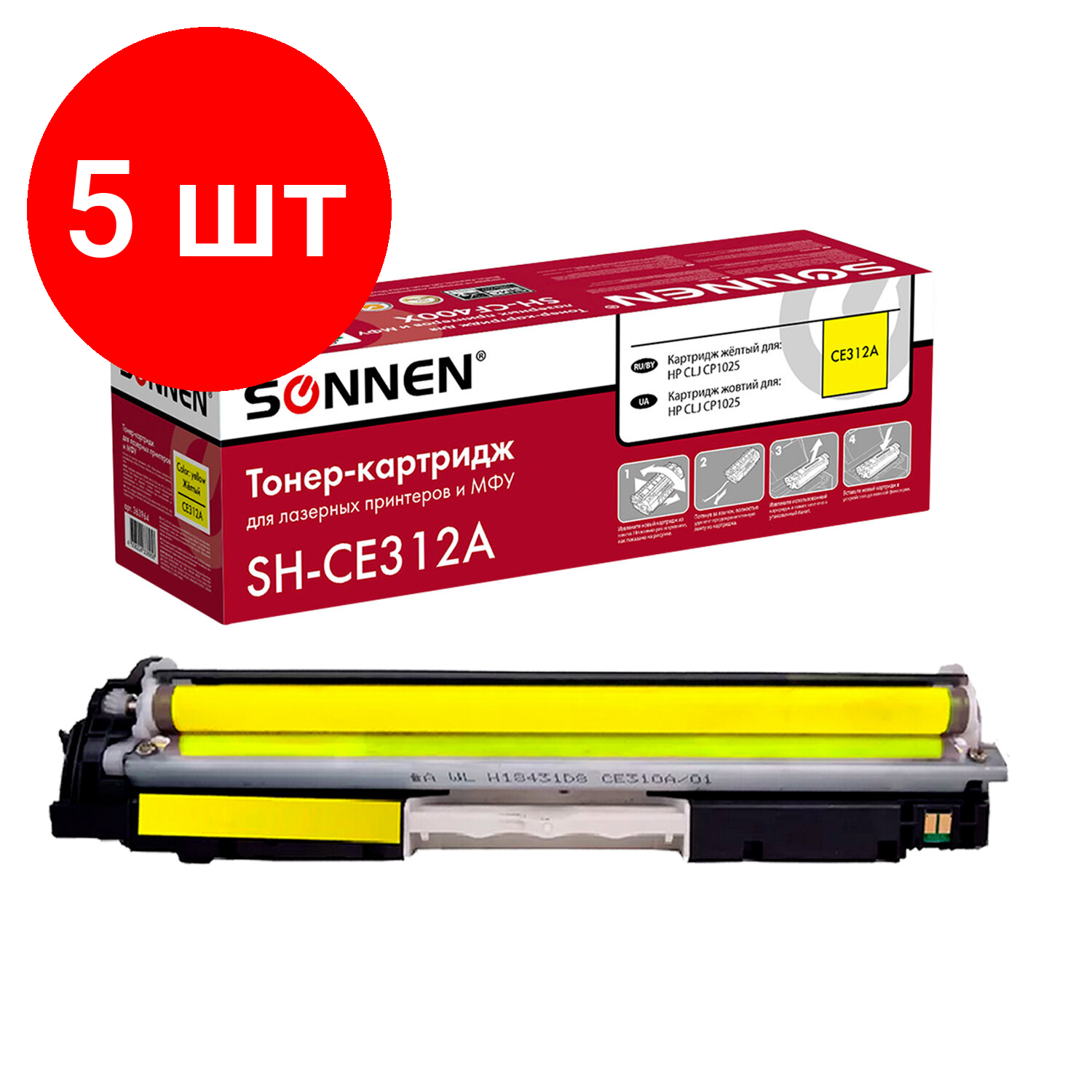 Купить Комплект 5 шт, Картридж лазерный SONNEN (SH-CE312A) для HP СLJ CP1025 высшее качество желтый, 1000 стр. 363964