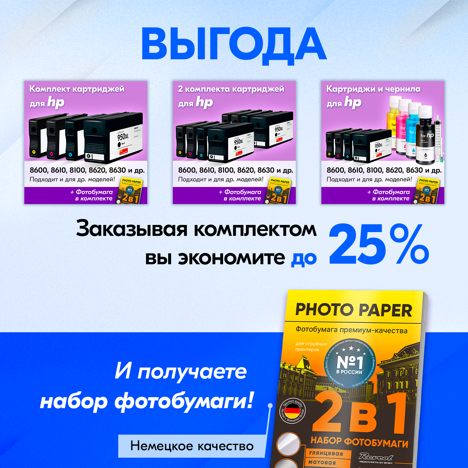 Картриджи для HP 950 XL, 951 XL, HP Officejet Pro 8600, 8610, 8100, 8620 и др. с чернилами, Черный, Голубой, Пурпурный, Желтый, 4 шт.