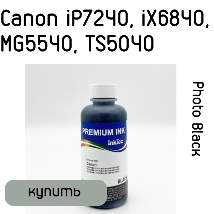 Чернила для принтера Canon PIXMA TS5040, iP7240, TS704, iX6840, TS6340, MG5540, MG5440 и др. Краска на принтер для заправки картриджей, (Черный Фото)