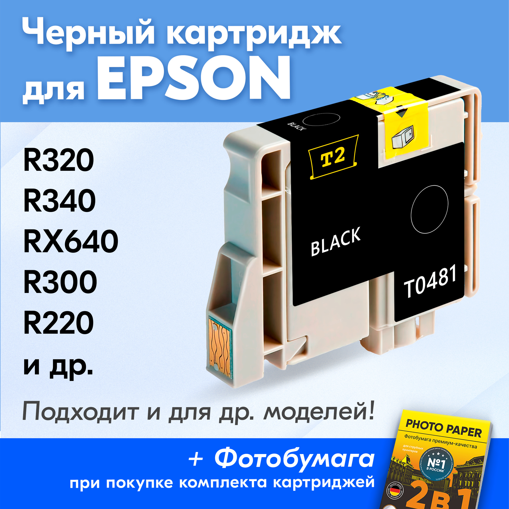 СохранитьКартридж для Epson T0481, Epson Stylus Photo R320, R340, RX640, R300, R220, R200 с чернилами (с краской) для струйного принтера, Черный (Black) интересное: