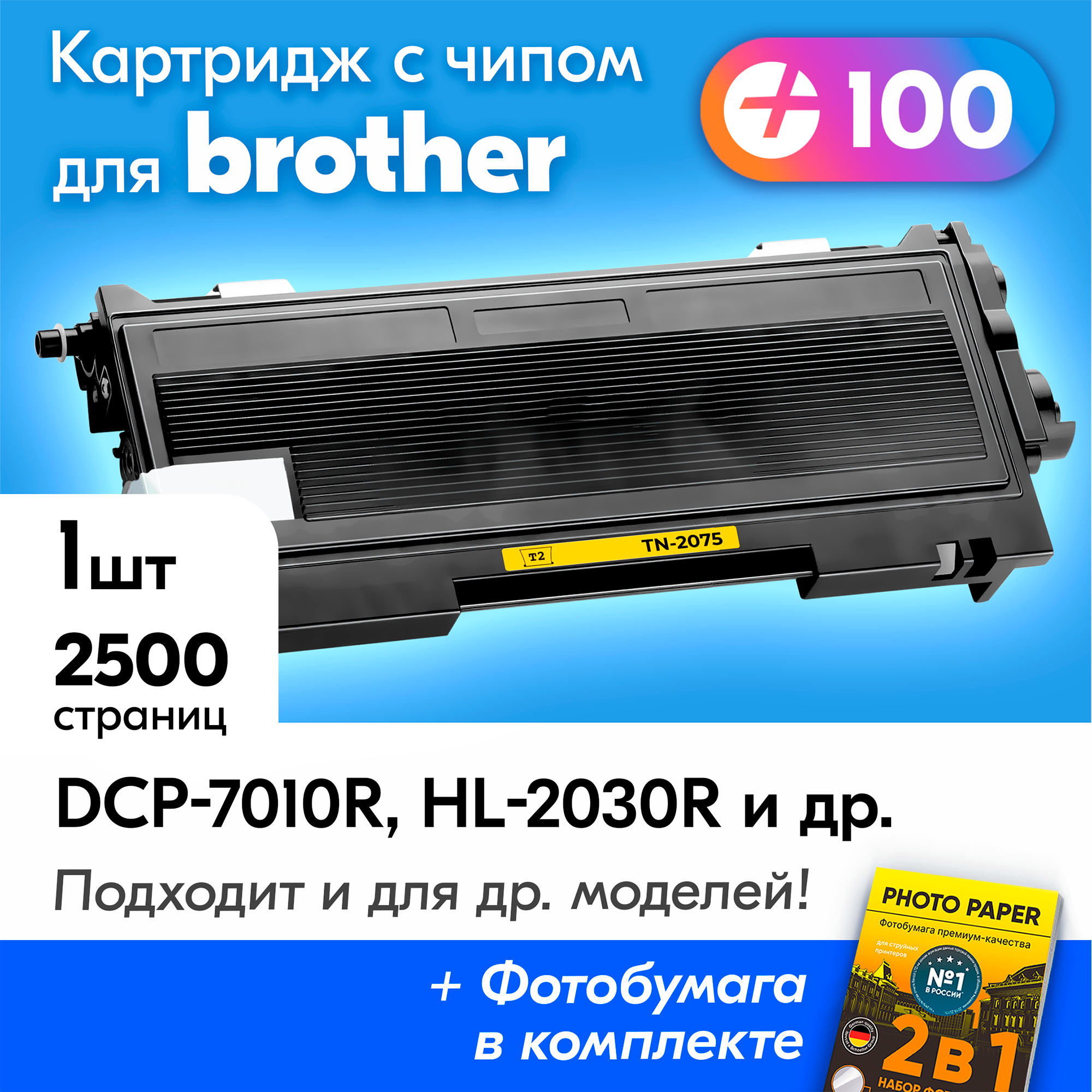 Картридж к Brother TN-2075, DCP-7010R MFC-7420R HL-2030R DCP-7025R FAX-2825R FAX-2920R HL-2040R HL-2070NR MFC-7820NR и др, с краской (тонером) черный новый заправляемый 2500 страниц с чипом интересное: