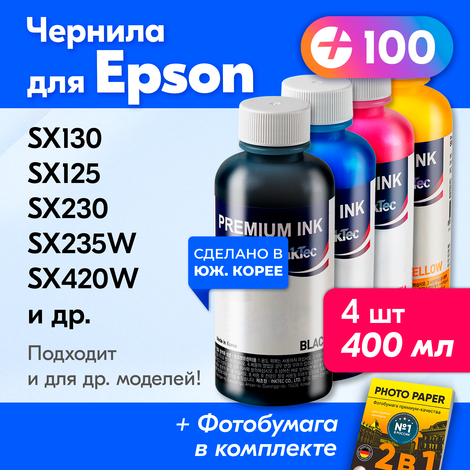 Купить Чернила для принтера Epson Stylus SX130, SX125, SX230, SX235W, SX420W и др, краска на принтер для заправки картриджей, Черный, Цветные, 4 шт.
