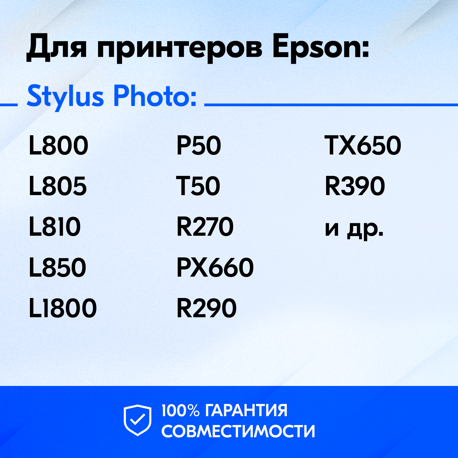 Чернила для принтера Epson Stylus Photo T50, R270, R290, TX650, R390 и др, для T0821-T0826. Краска на принтер для заправки картриджей (Комплект 6шт)