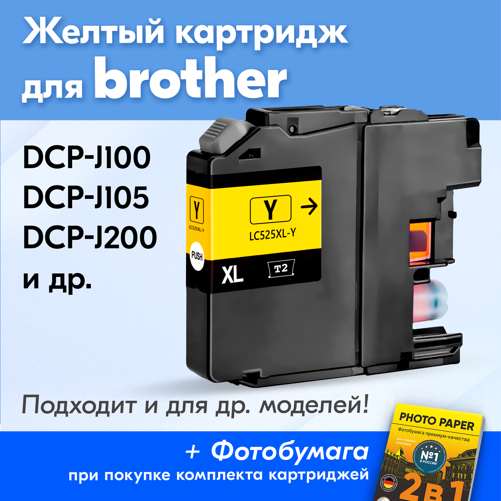 Купить Картридж для Brother LC-525XLM, Brother DCP-J100, DCP-J105, DCP-J200 и др. с чернилами желтый новый заправляемый, 1300 копий