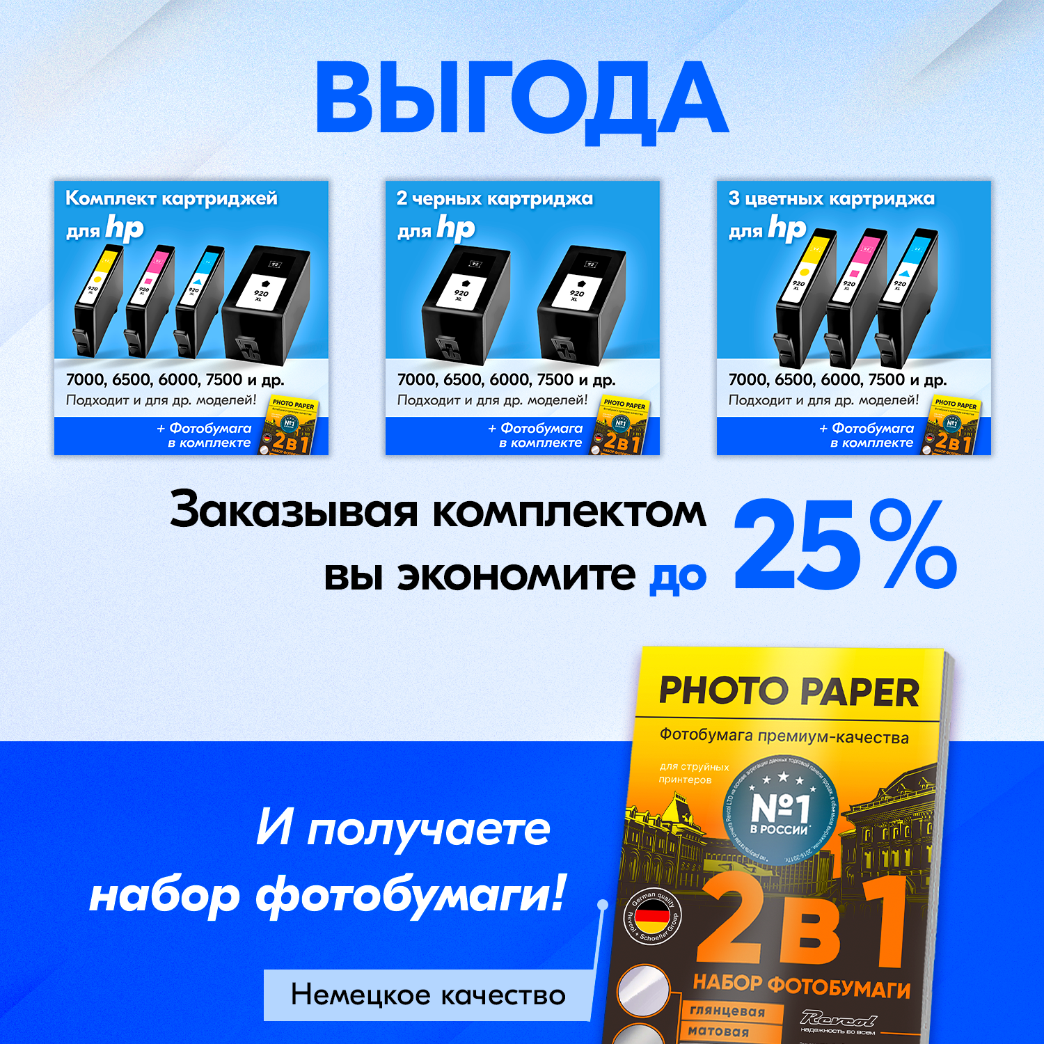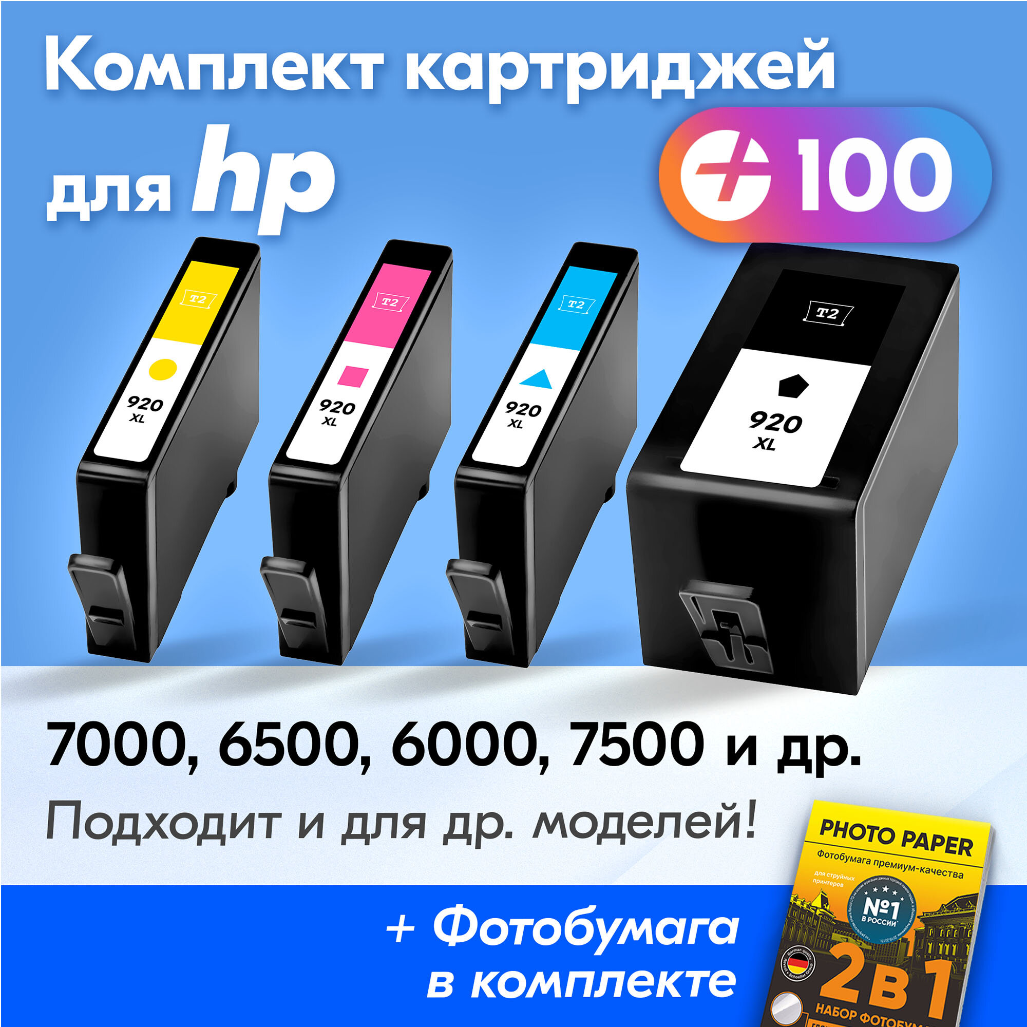 Картриджи к HP OfficeJet 7000, 6500, 6000, 7500 и др / 920 комплект из 4 шт. с чернилами для струйного принтера увеличенный объем заправляемые интересное:
