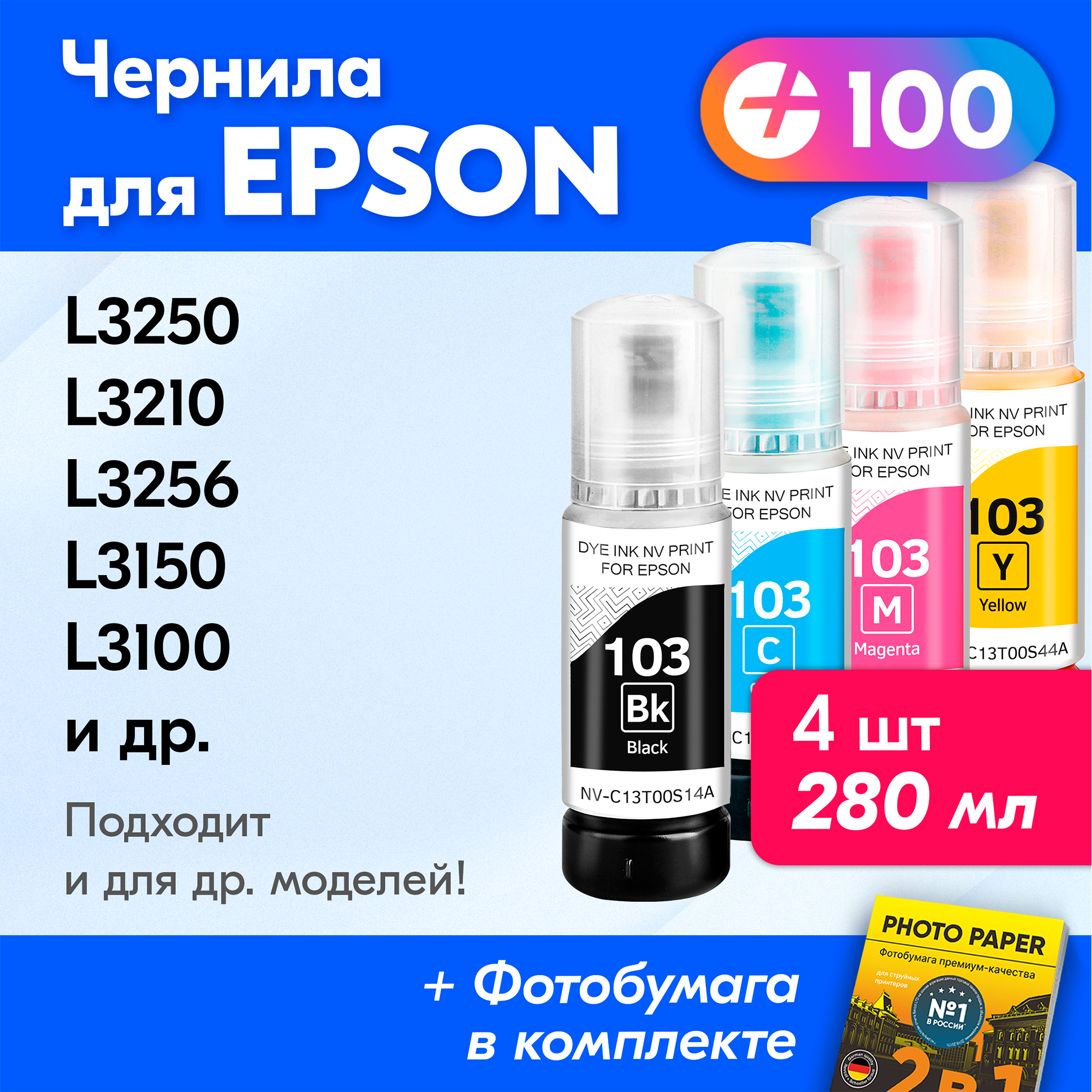 Купить Чернила для Epson 103, Epson L3250 L3210 L3256 L3150 L3100 L3251 L3151 L3101 L3260 и др. Краска для принтера Эпсон для заправки картриджей (Комплект 4 шт)