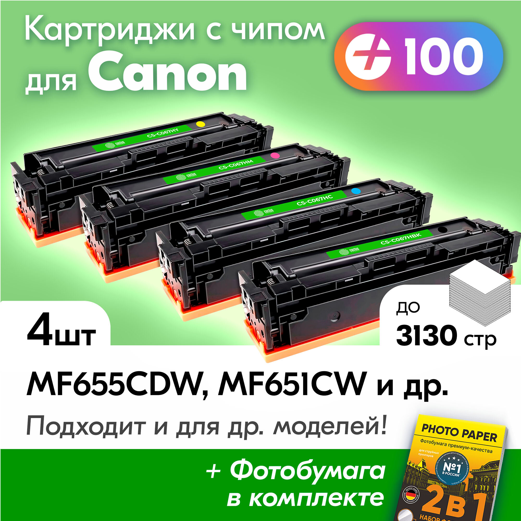 Картриджи к Canon 067H, Canon i-SENSYS MF655CDW MF651CW LBP631CW MF657CDW LBP633CDW MF657CW MF655CW и др, комплект 4 шт. 3130 к. с чипом интересное: