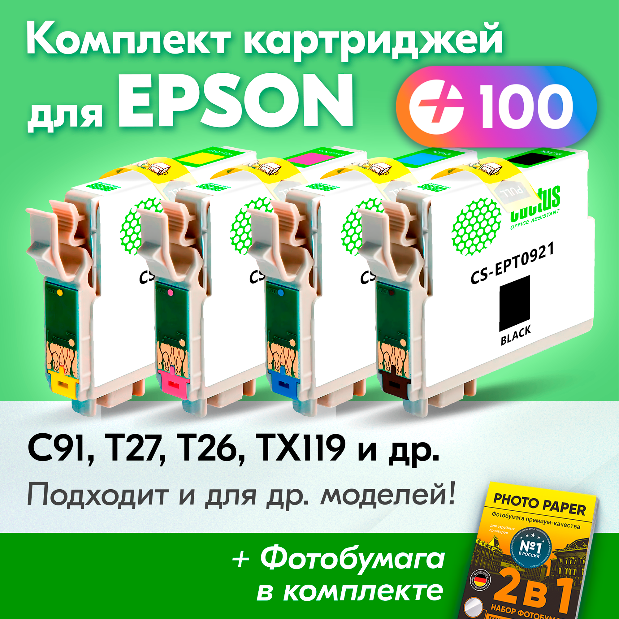 Купить Картриджи для Epson T0921, T0922, T0923, T0924, Epson C91, CX4300, T26, TX106, TX109, TX117, TX119 и др. с чернилами (краской) черный, голубой, пурпурный, желтый новые заправляемые, 4 шт.