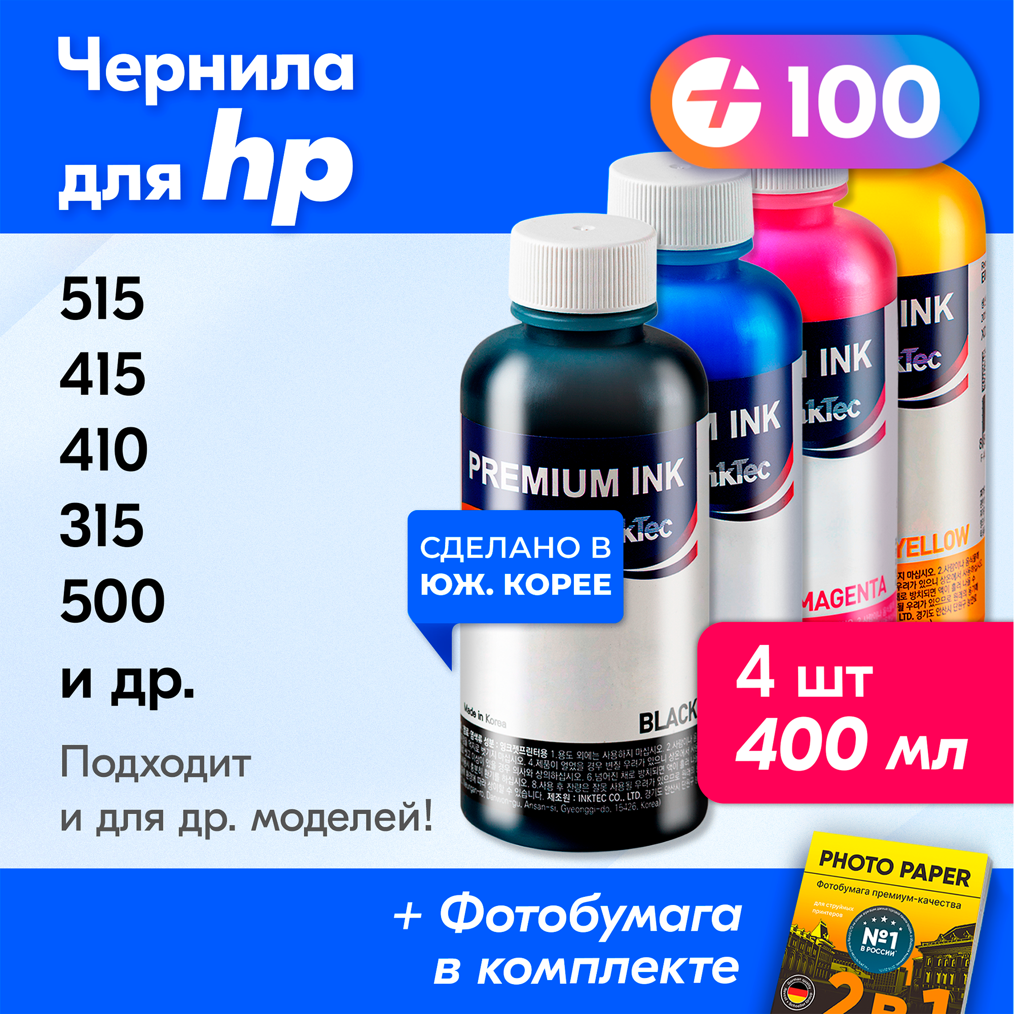 Купить Чернила для HP GT51-GT52, на принтер HP Smart Tank 515, 500, 516, 530, 580, Ink Tank 415, 410, 315, DeskJet GT5810, GT5820 и др. Краска для заправки струйного принтера, Цветные, 4шт.