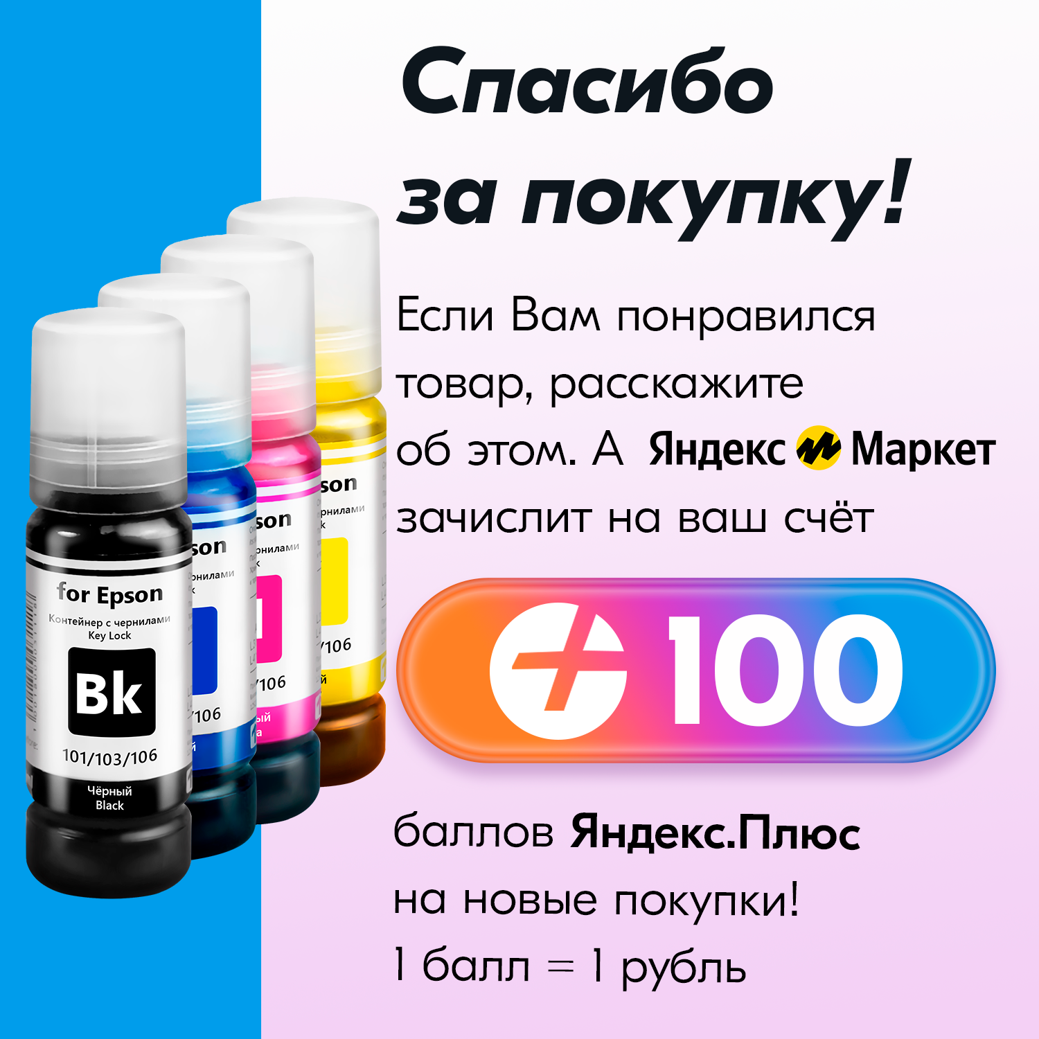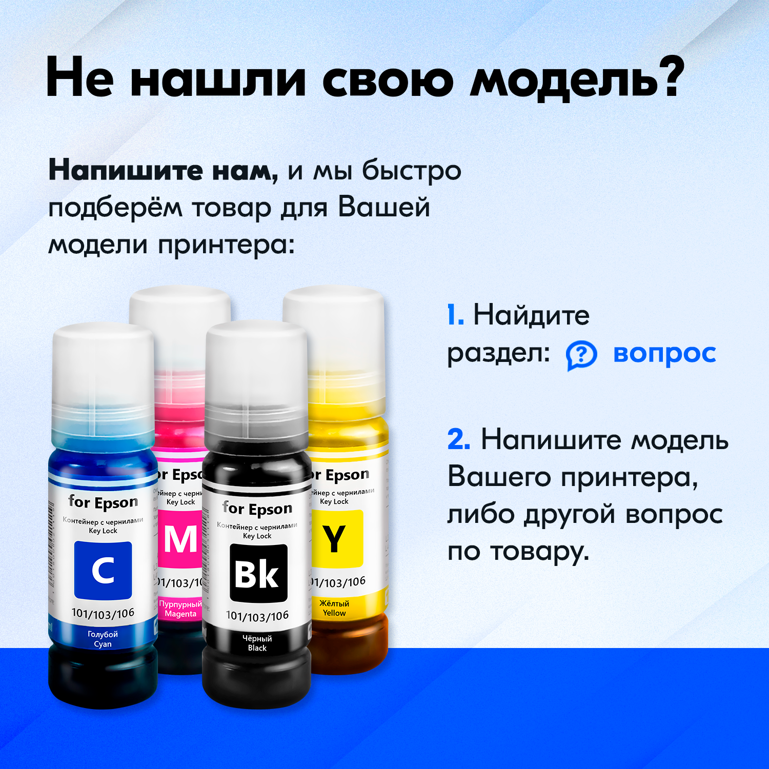Чернила для Epson 101, 103, 106 Key Lock, Epson L3250, L3210, L3256, L8050, L3150 и др. 70 мл Краска для заправки струйного принтера Черный, Голубой, Пурпурный, Желтый, 4шт.