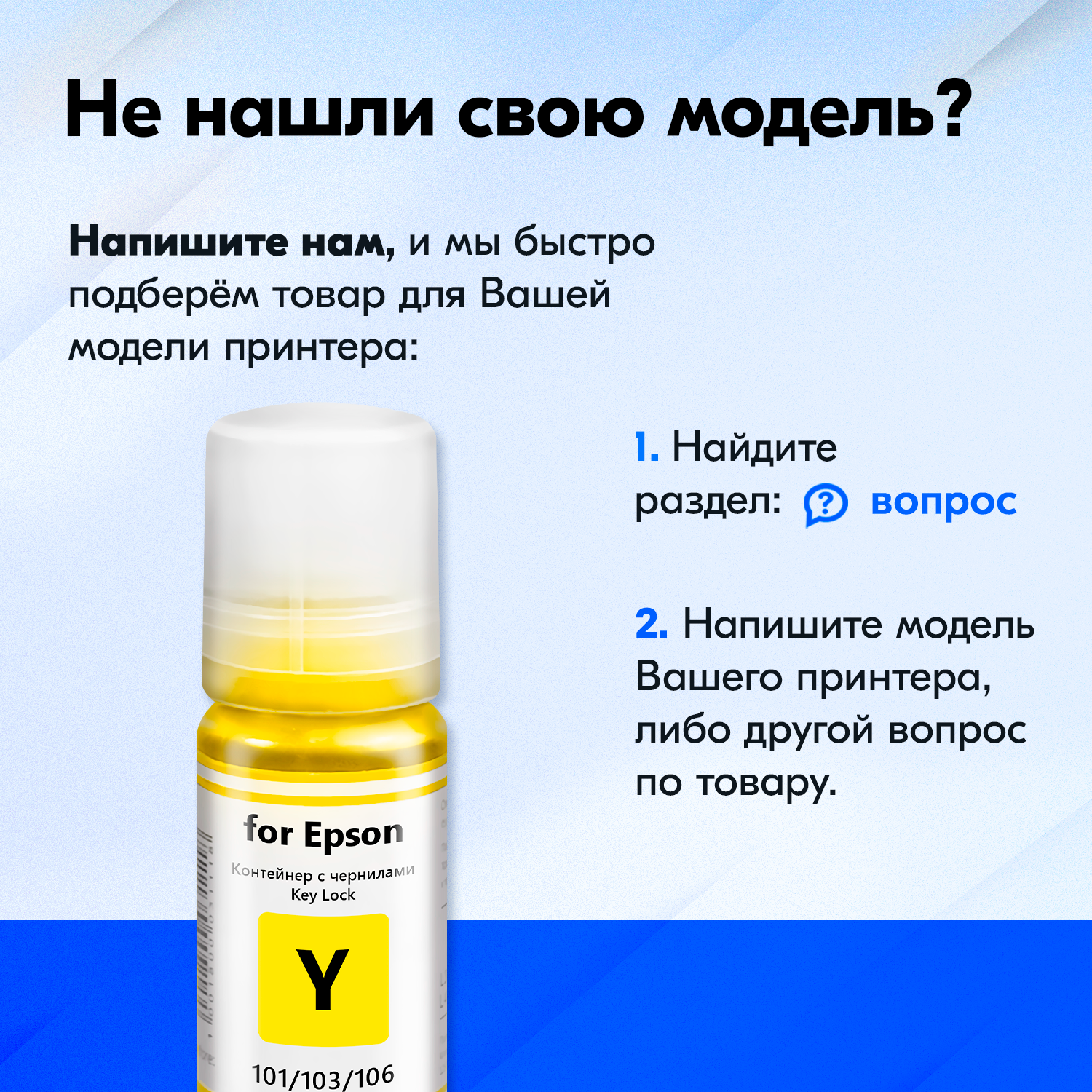 Чернила для Epson 101, 103, 106 Key Lock, Epson L3250, L3210, L3256, L8050, L3150 и др. 70 мл. Краска для заправки струйного принтера (Голубой) Cyan