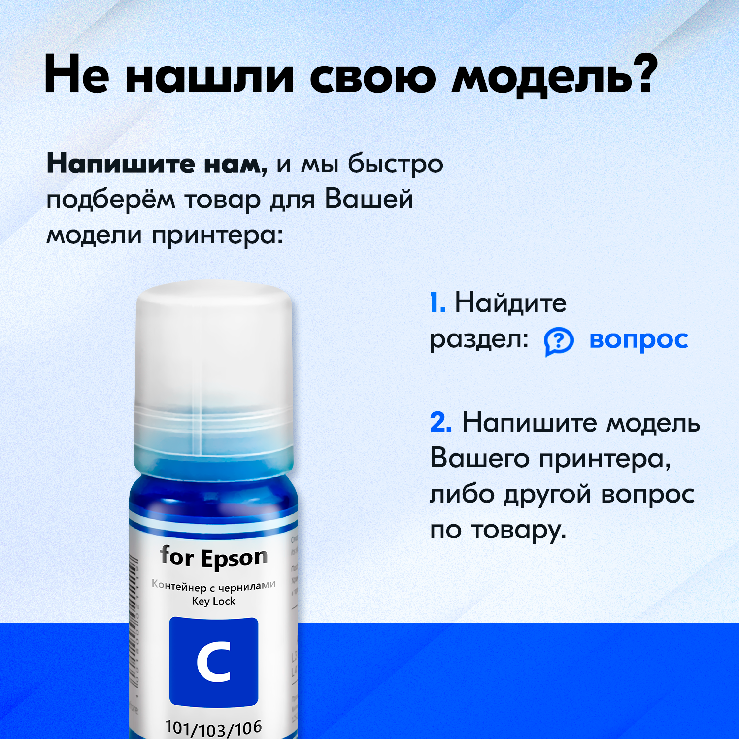 Купить Чернила для Epson 101, 103, 106 Key Lock, Epson L3250, L3210, L3256, L8050, L3150 и др. 70 мл. Краска для заправки струйного принтера (Голубой) Cyan