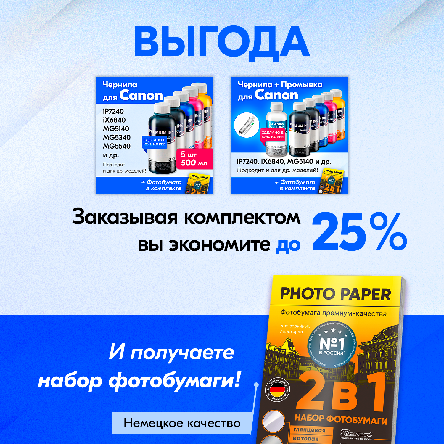 СохранитьЧернила для принтера Canon PIXMA iP7240, iX6840, MG5140, MG5340, MG5540 и др. Краска на принтер для заправки картриджей (Комплект 2шт) интересное: