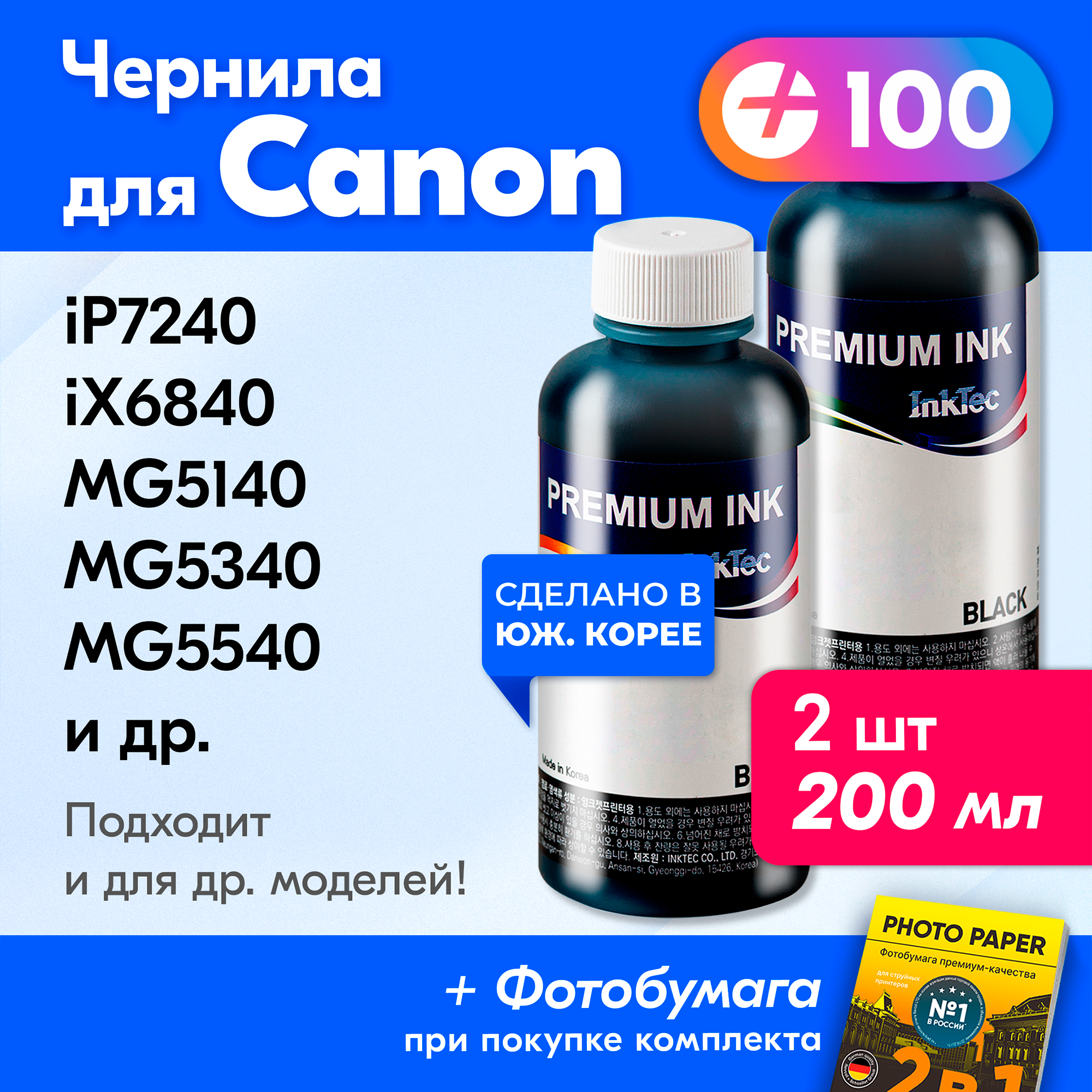 Купить Чернила для принтера Canon PIXMA iP7240, iX6840, MG5140, MG5340, MG5540 и др. Краска на принтер для заправки картриджей (Комплект 2шт)