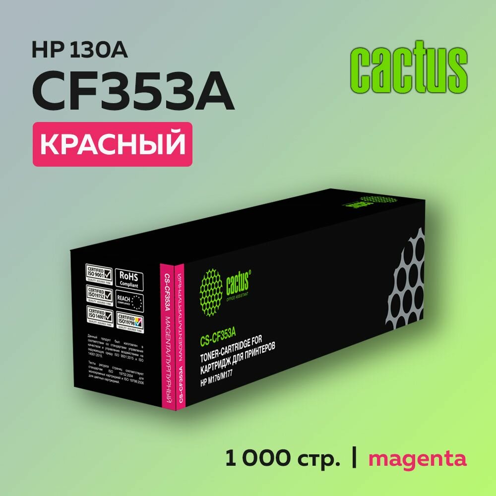 Картридж Cactus CF353A (HP 130A) пурпурный для HP LJ Pro MFP M176/M177 интересное: