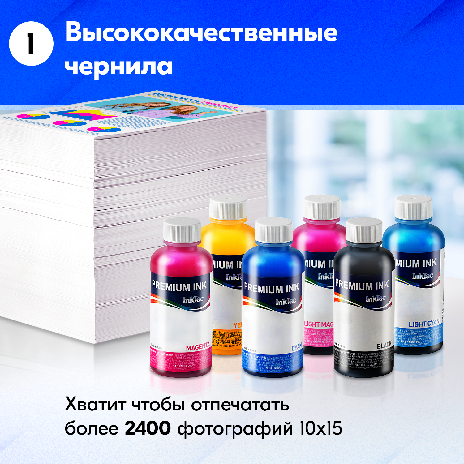 Чернила Epson L805 L850 L1800 (InkTec) E0017-100MX Bk C M Y LC LM (6х100мл) водорастворимые комплект