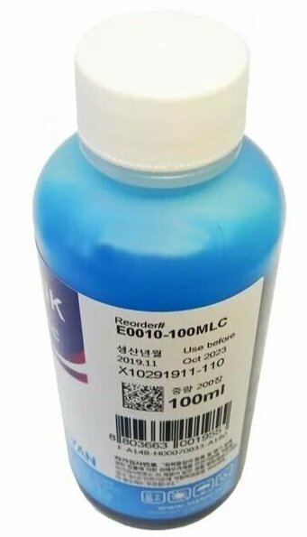 Чернила для принтеров Epson, для заправки картриджей, ПЗК, СНПЧ, водорастворимые, InkTec E0010-100MLC, 100 мл, светло-голубые