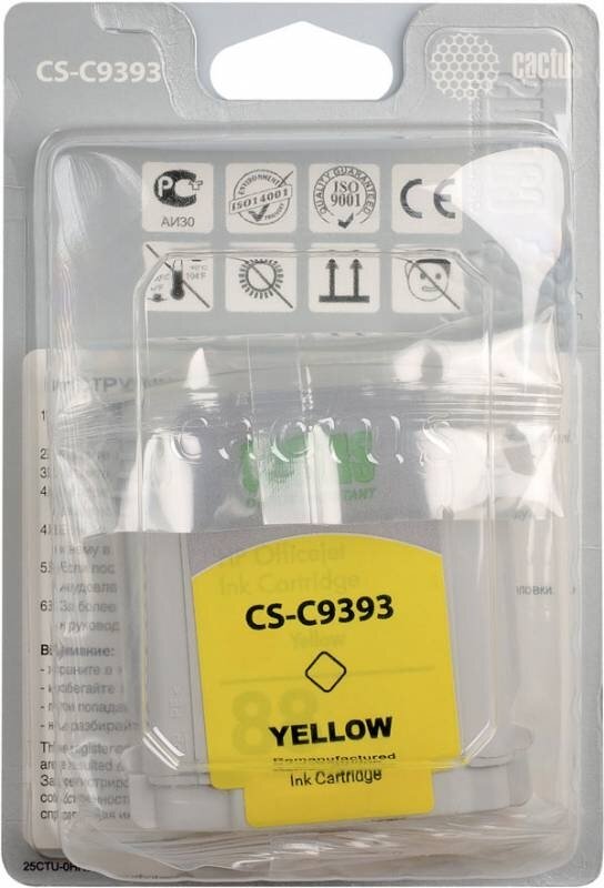 Картридж струйный Cactus CS-C9393 желтый для №88 HP Officejet Pro K550 (29ml) интересное: