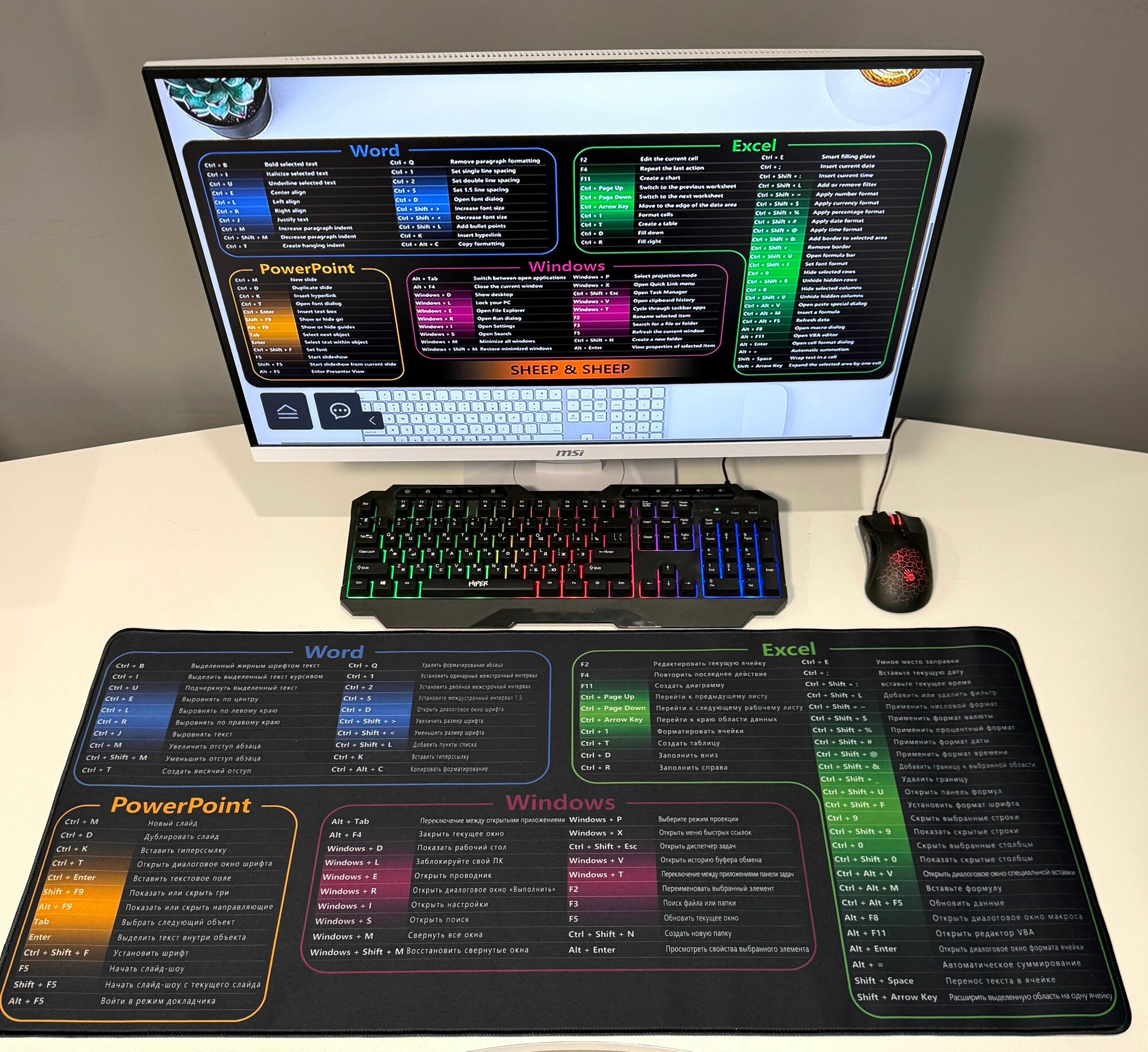 СохранитьБольшой игровой коврик для мышки и клавиатуры 90х40 см, горячие клавиши, быстрые команды интересное: