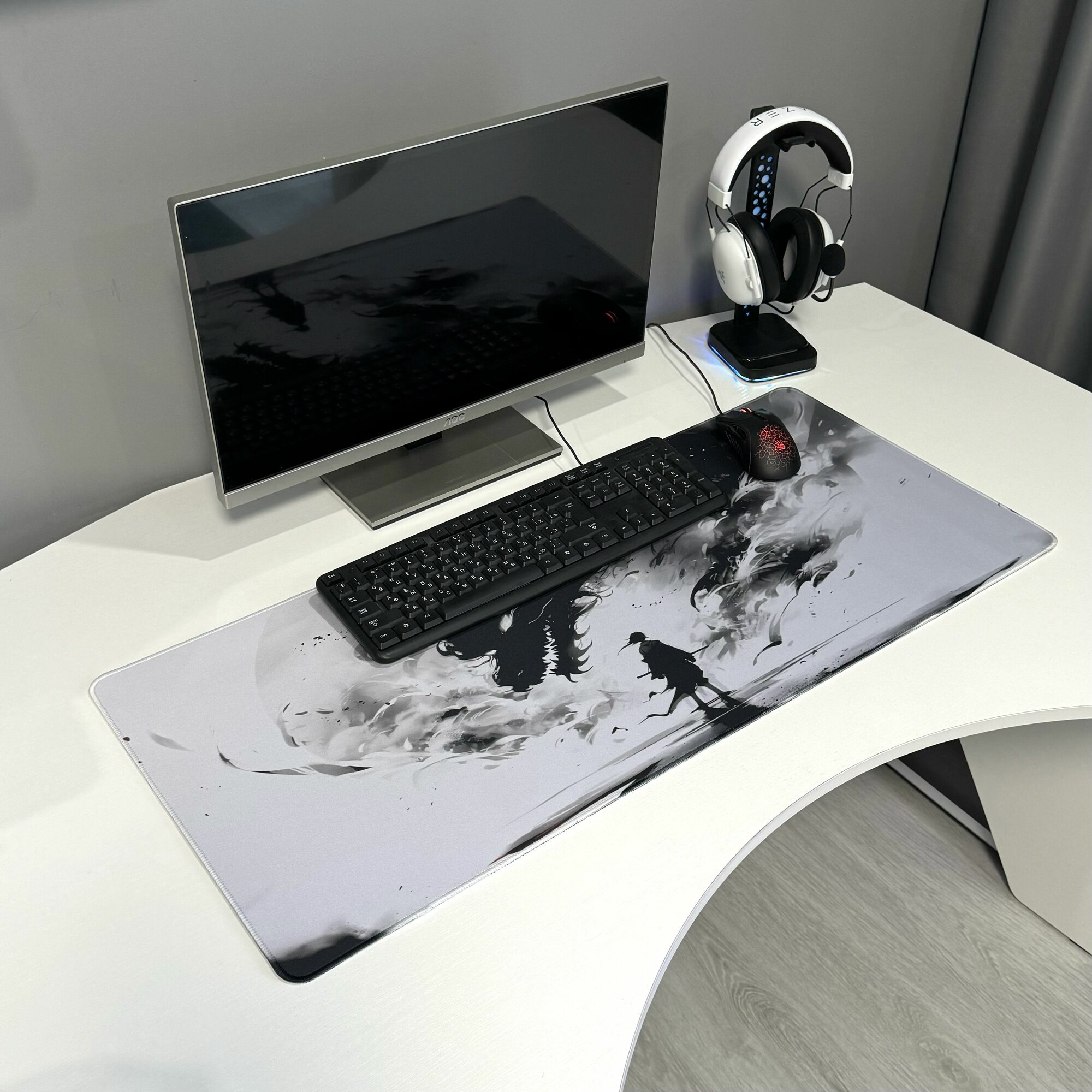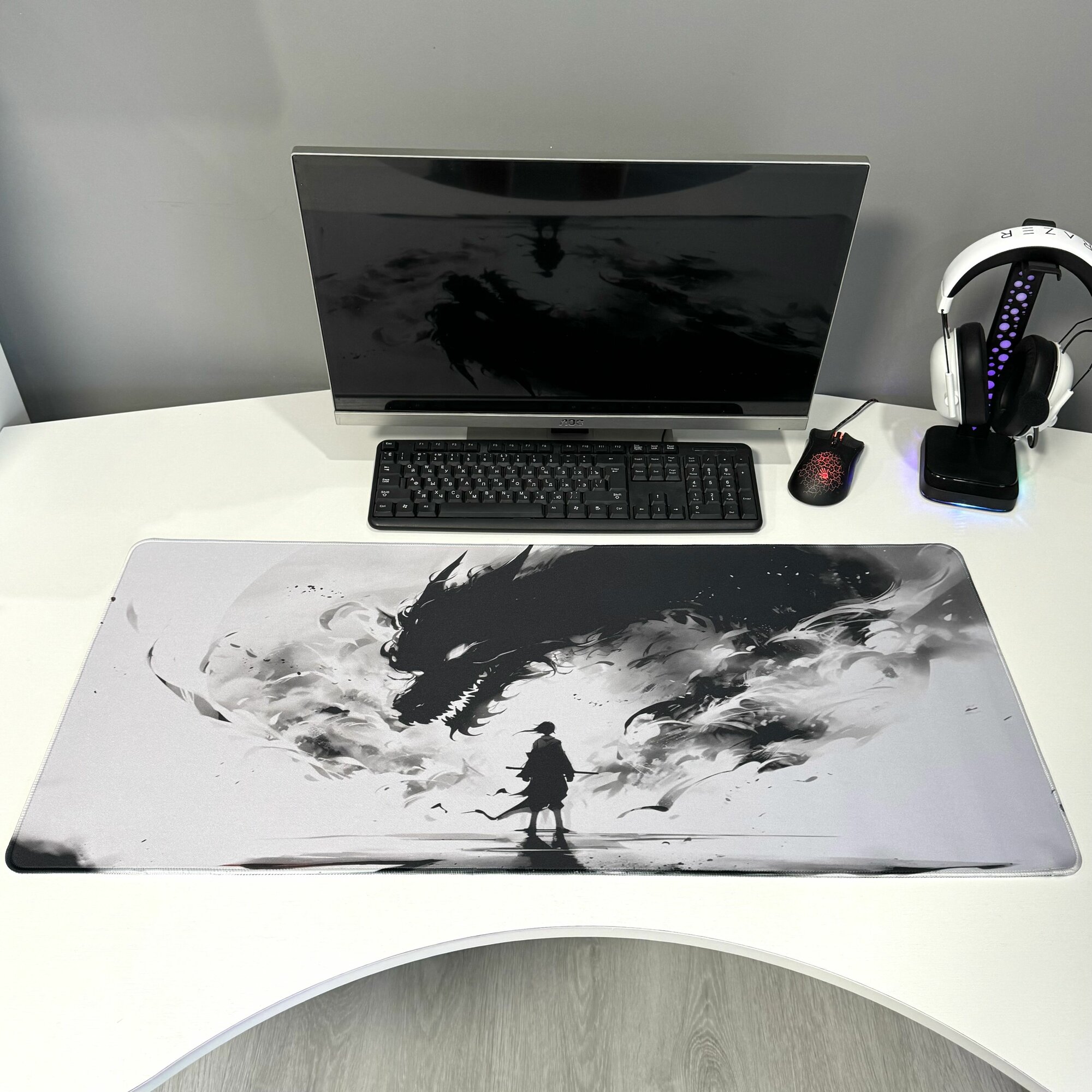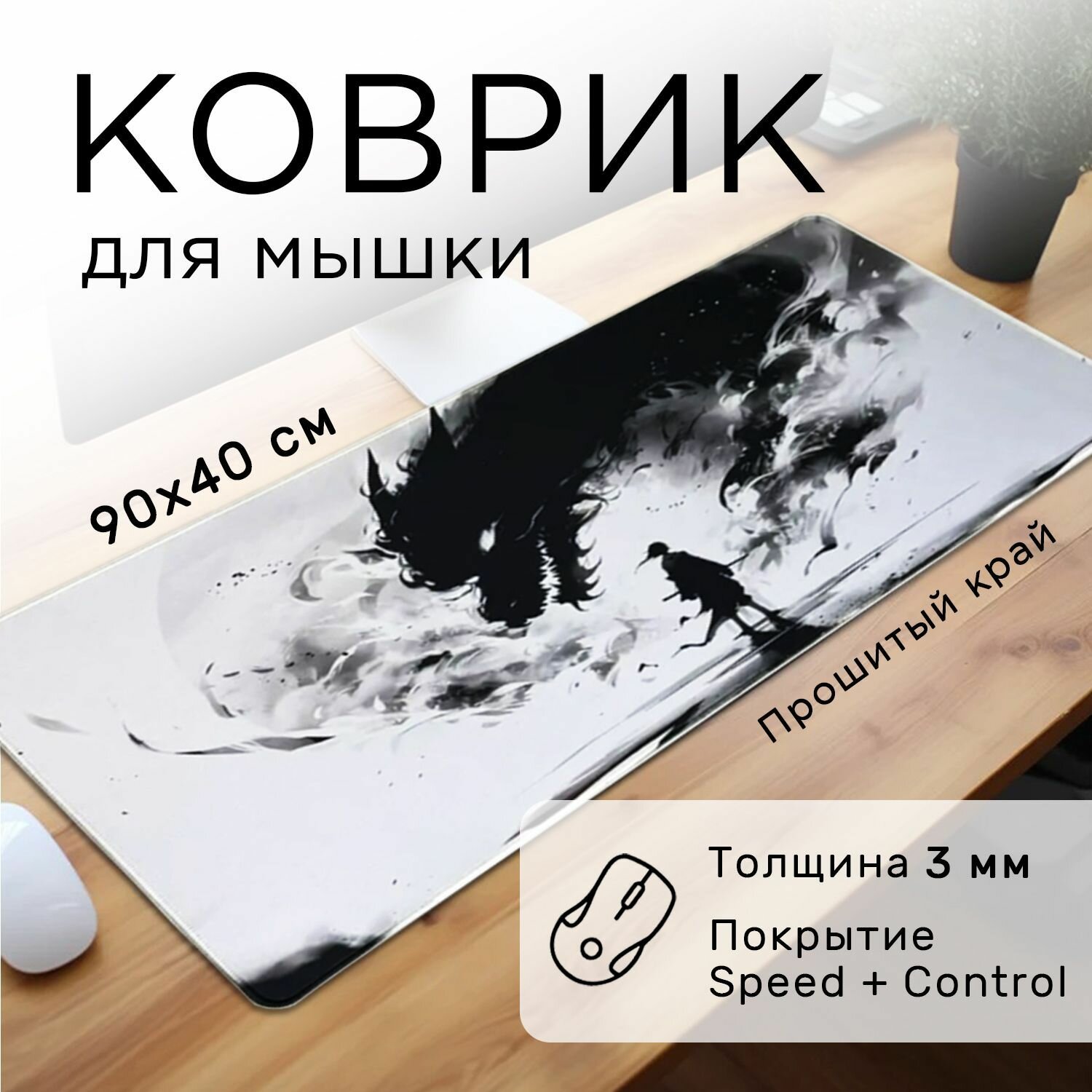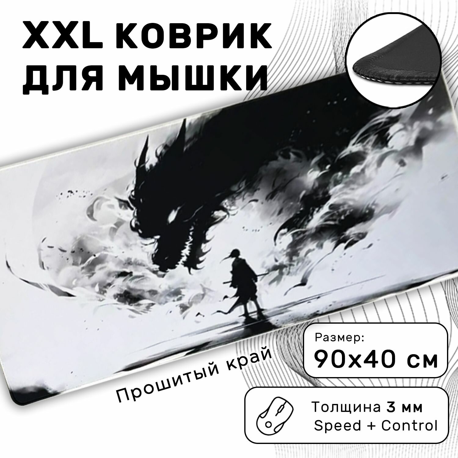 Купить Большой игровой коврик в японском стиле для мышки и клавиатуры 90х40 см, самурай против дракона