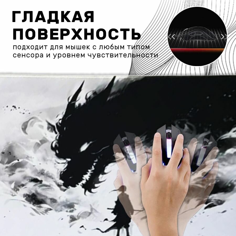 СохранитьБольшой игровой коврик в японском стиле для мышки и клавиатуры 90х40 см, самурай против дракона интересное: