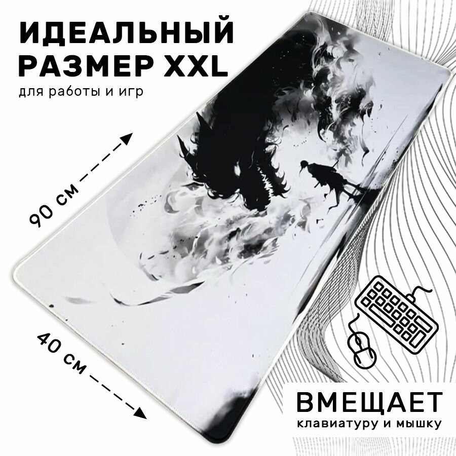 Большой игровой коврик в японском стиле для мышки и клавиатуры 90х40 см, дракон против викинга