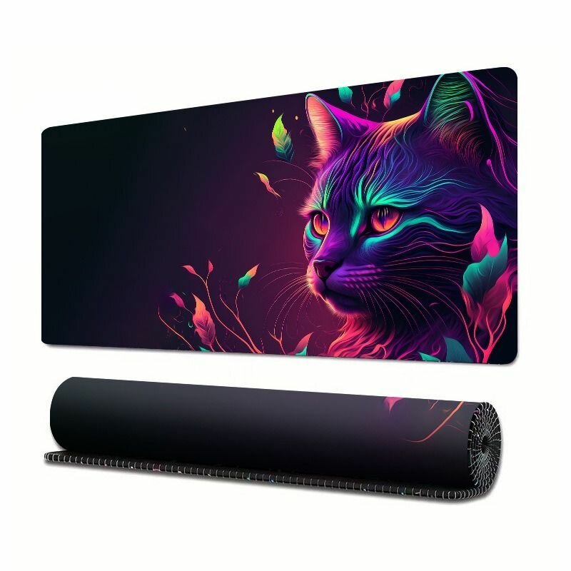 СохранитьБольшой игровой коврик в японском стиле для мышки и клавиатуры 90х40 см, неоновая кошка интересное: