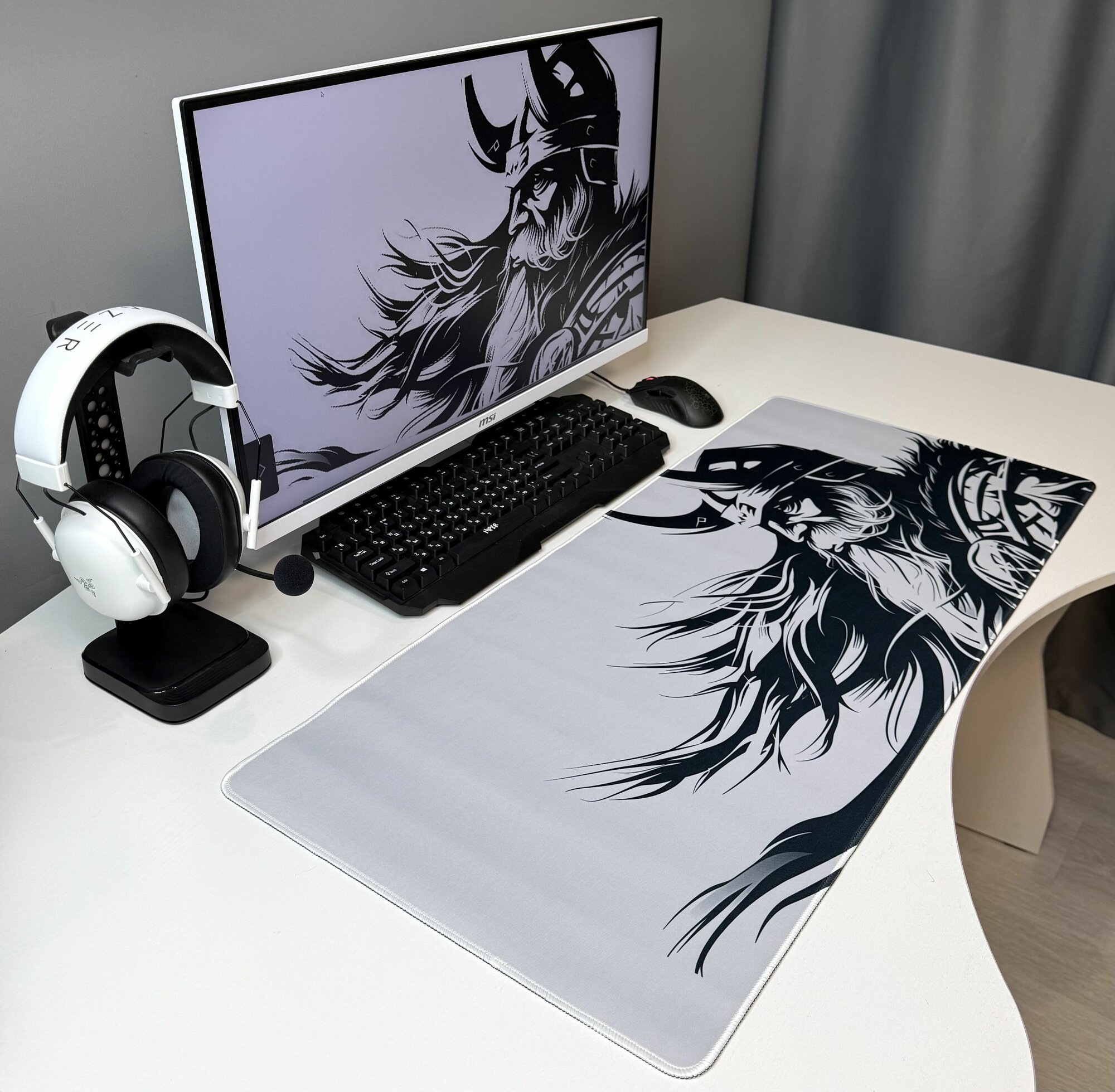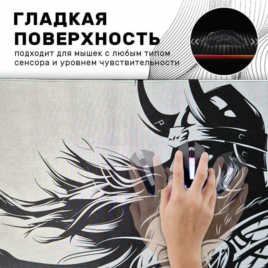 СохранитьБольшой игровой коврик в японском стиле для мышки и клавиатуры 90х40 см, скандинавский викинг в шлеме интересное: