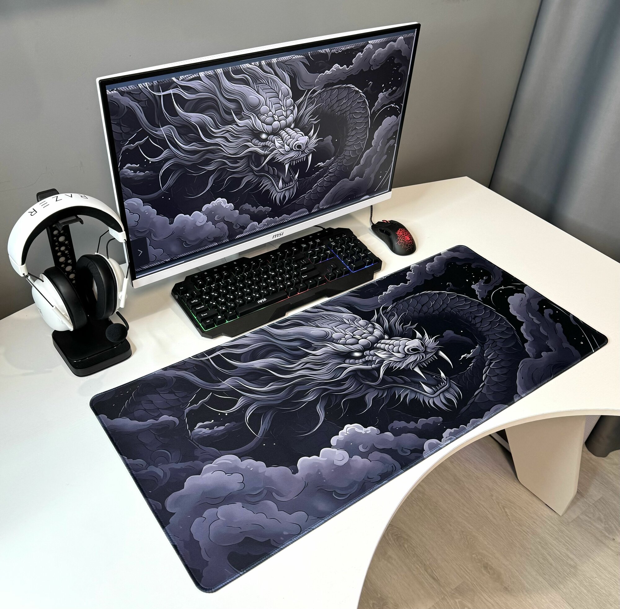 Большой игровой коврик в японском стиле для мышки и клавиатуры 90х40 см, китайский дракон