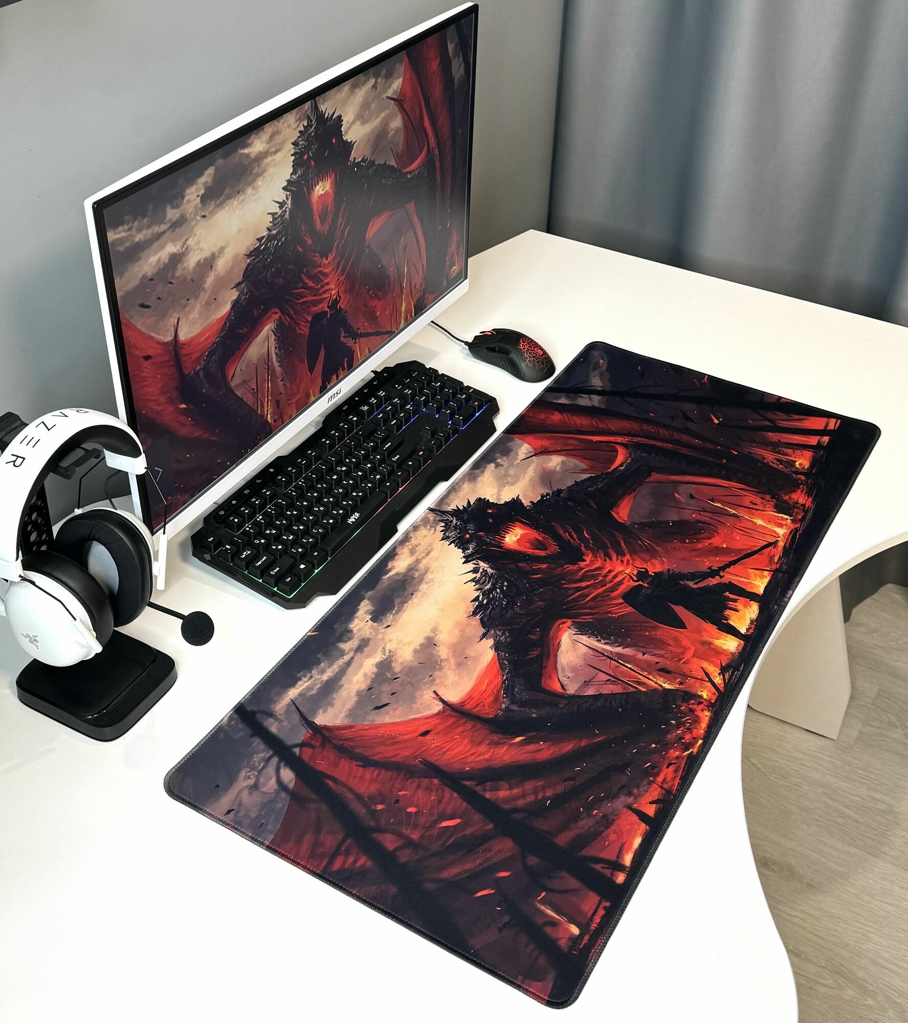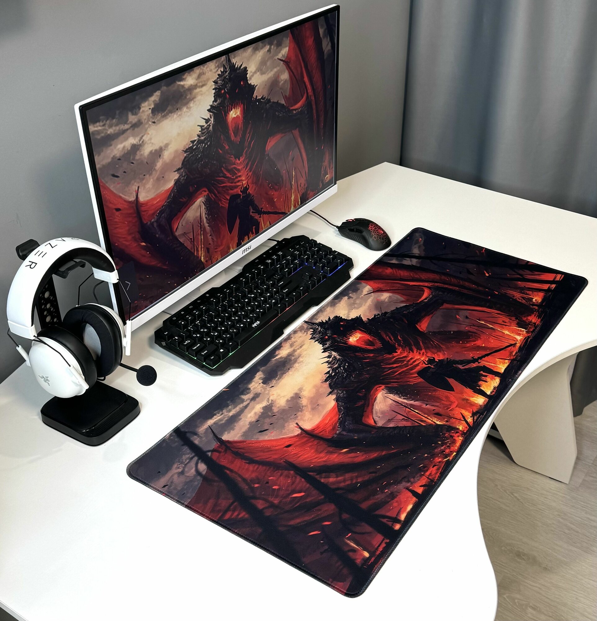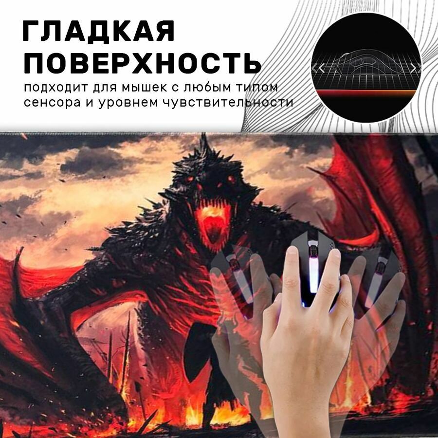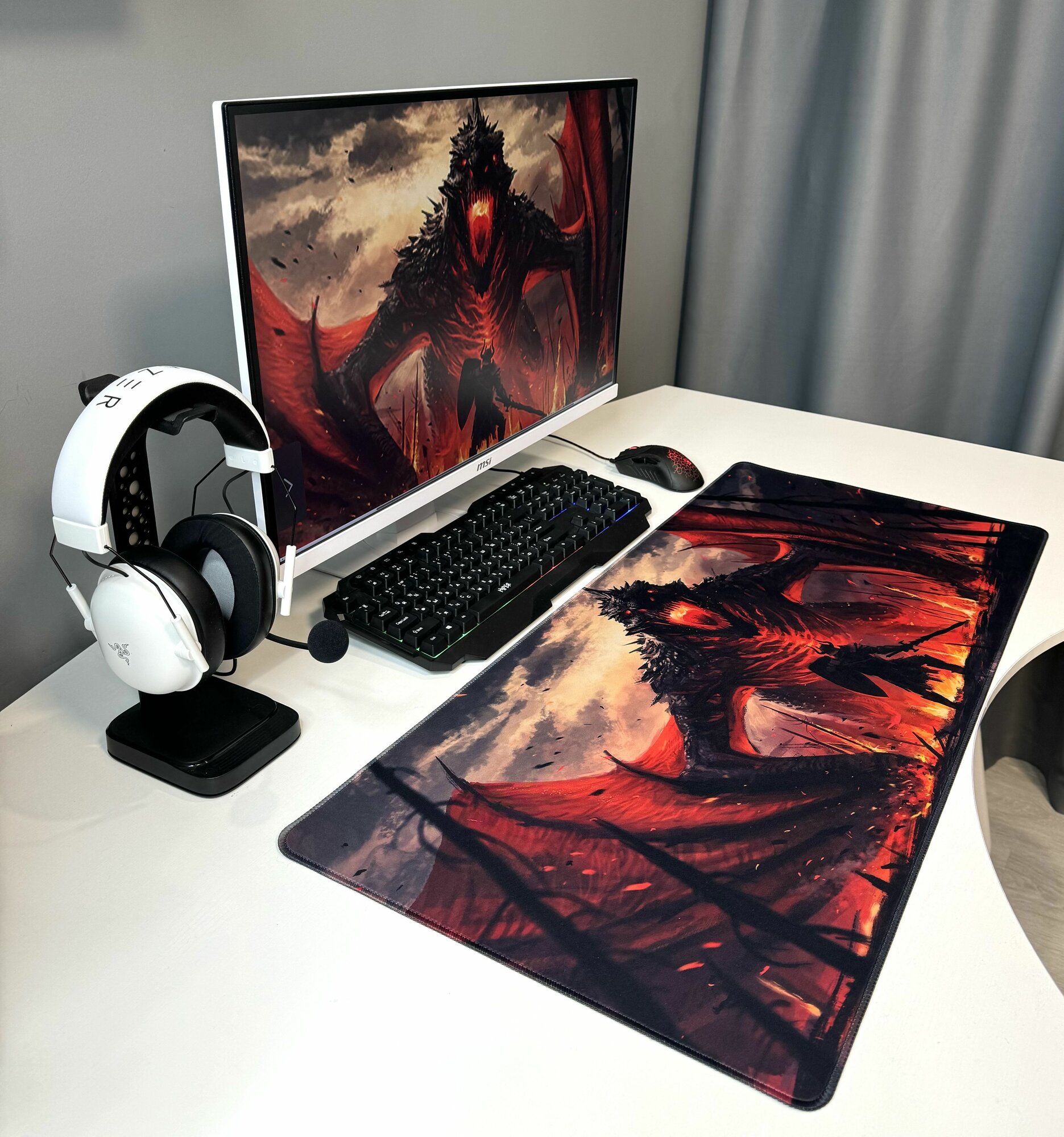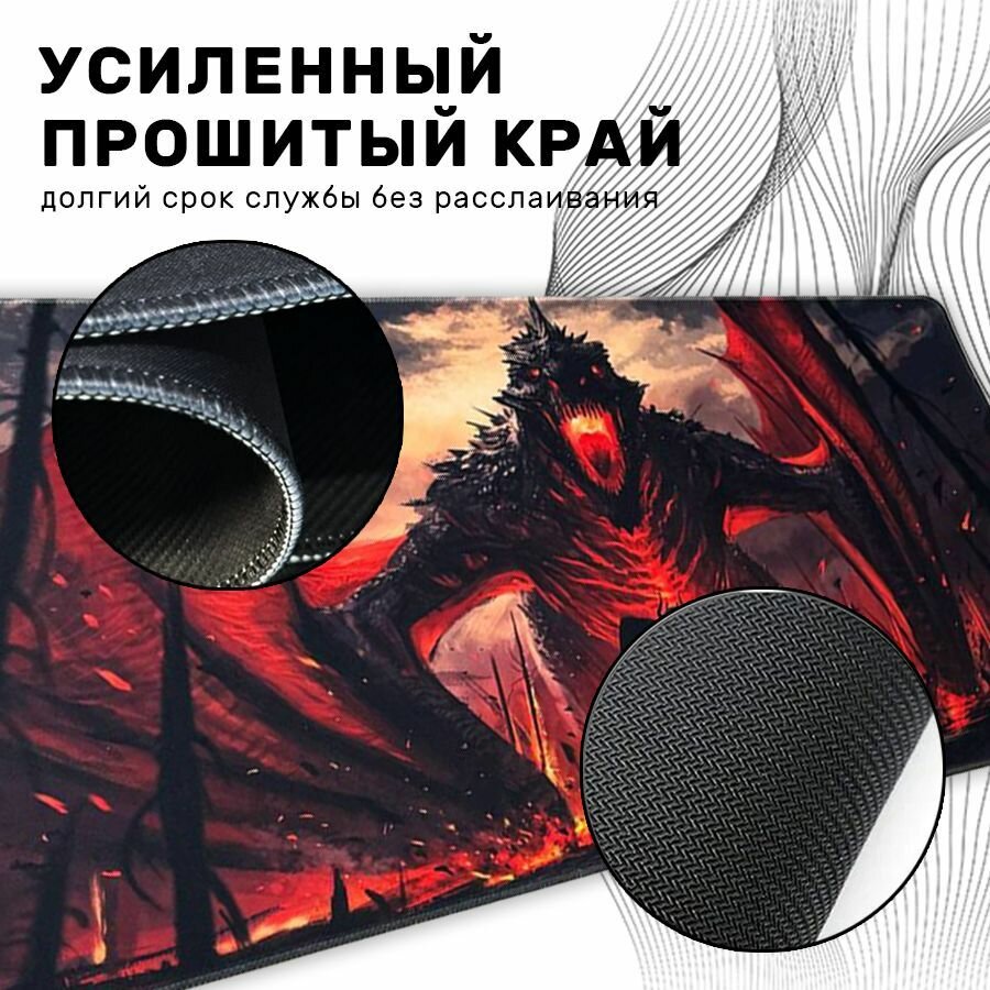 Большой игровой коврик в японском стиле для мышки и клавиатуры 90х40 см, пламя дракона дракарис
