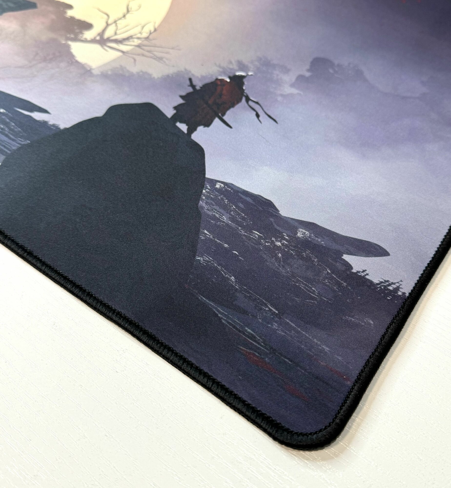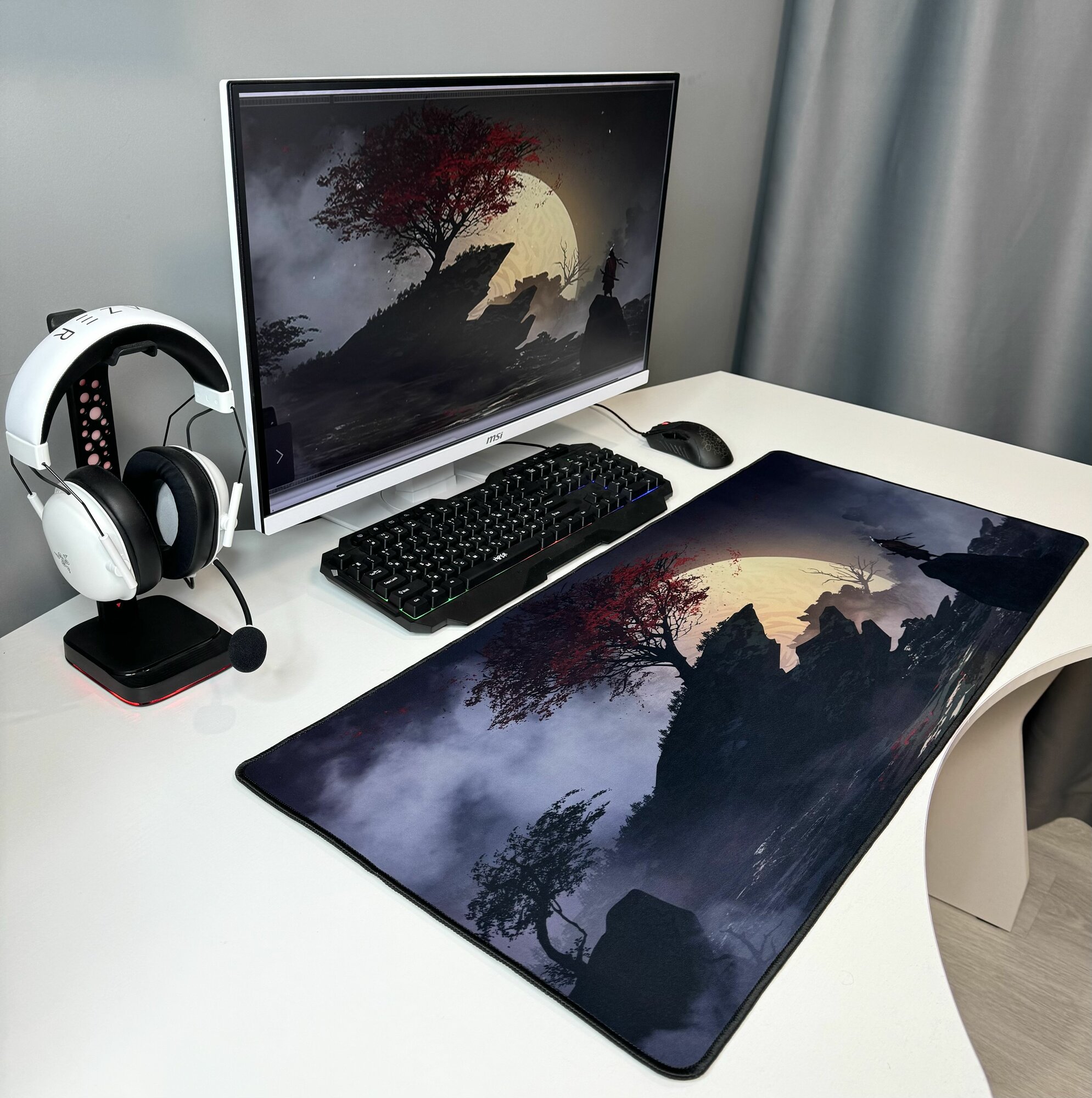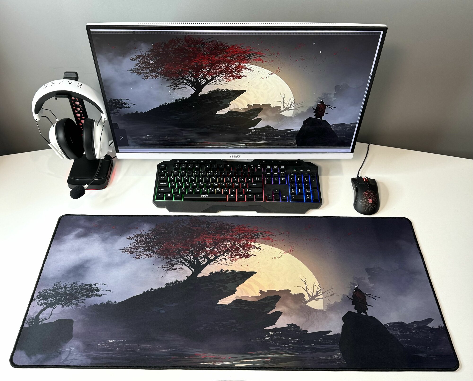 Купить Большой игровой коврик в японском стиле для мышки и клавиатуры 90х40 см, самурай в полнолуние