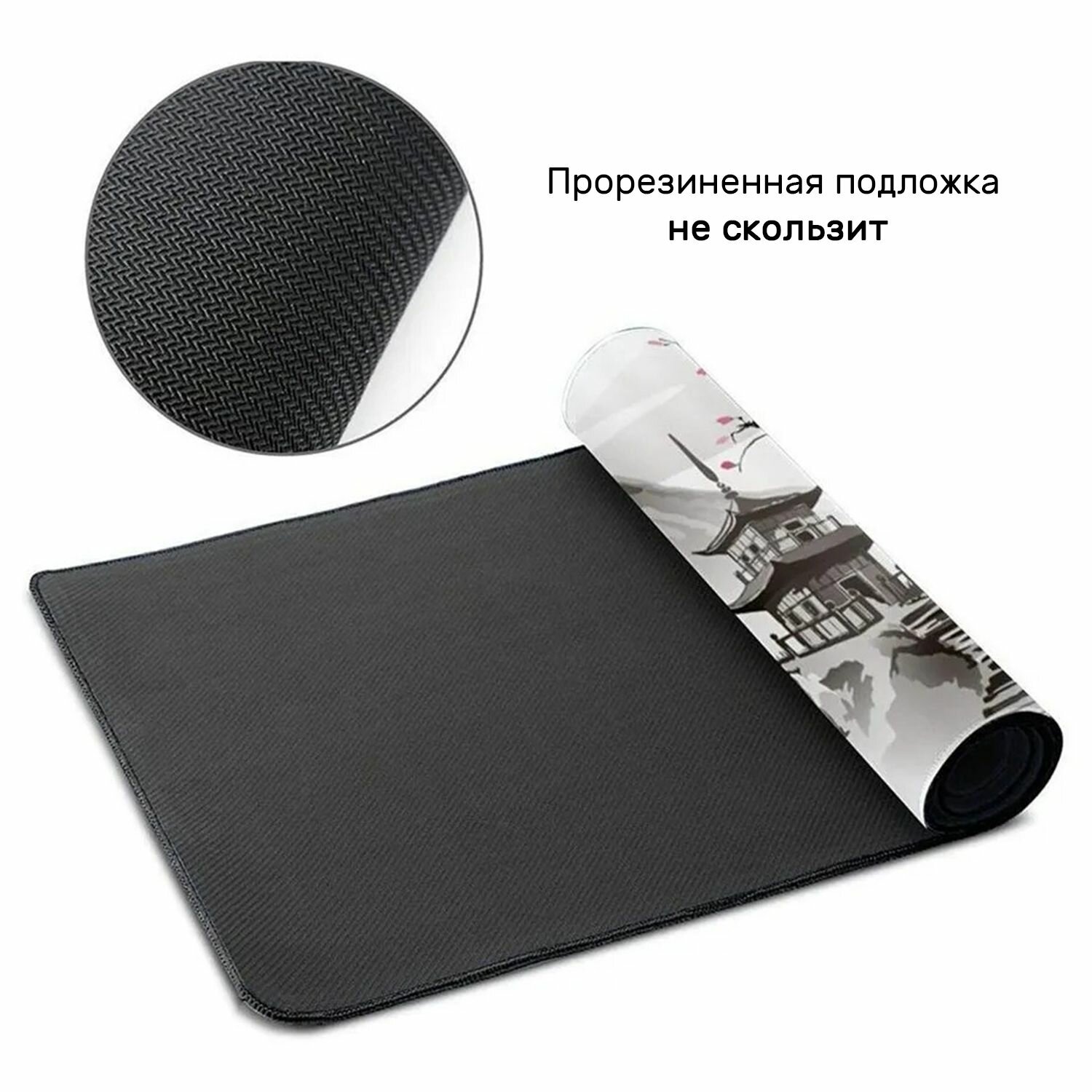 Большой игровой коврик в японском стиле для мышки и клавиатуры 90х40 см, японский пейзаж