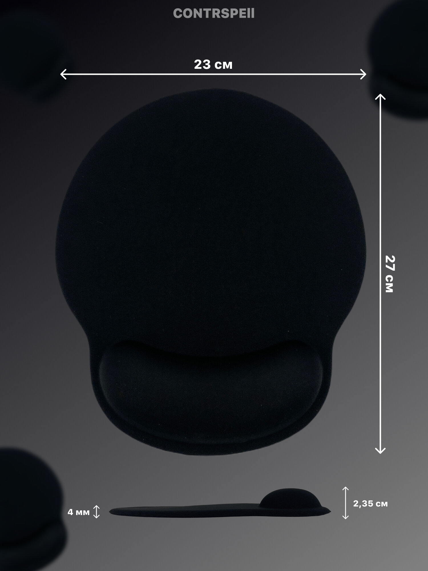 Коврик для мышки маленький с подушкой для запястья 270x230 мм Черный матовый принт интересное: