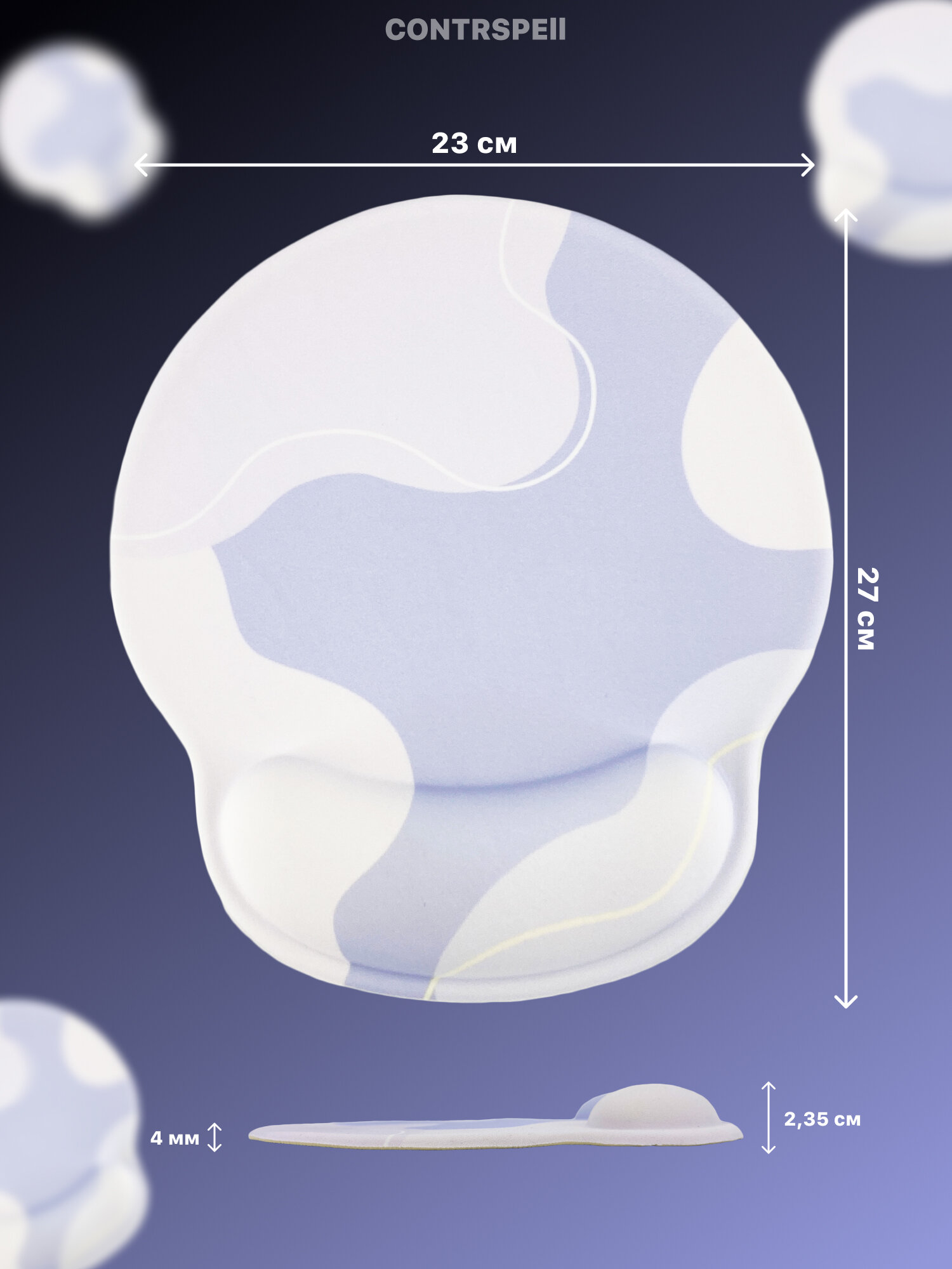 Коврик для мышки маленький с подушкой для запястья 270x230 мм Светлый голубой принт интересное: