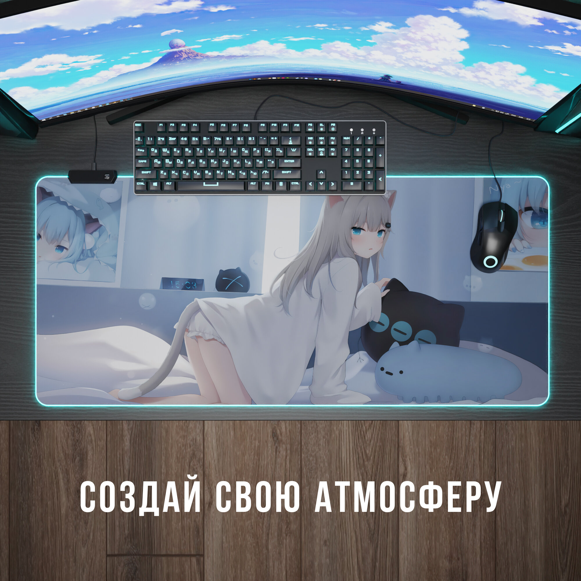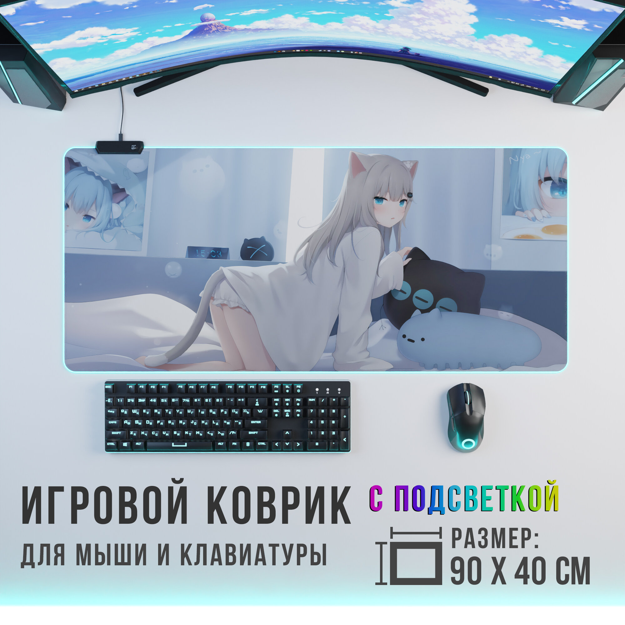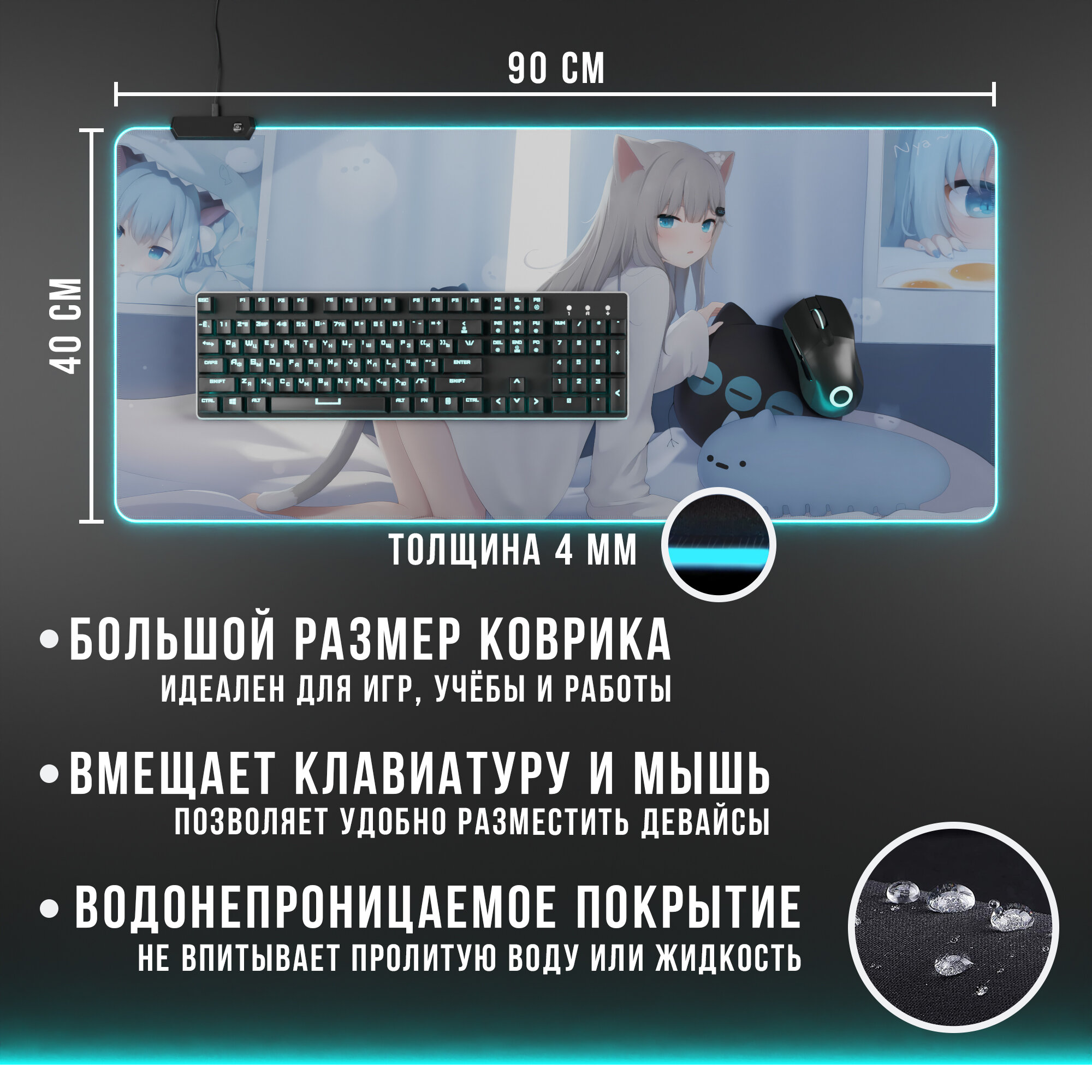 Игровой коврик для мыши CatGirl 1 с RGB подсветкой интересное: