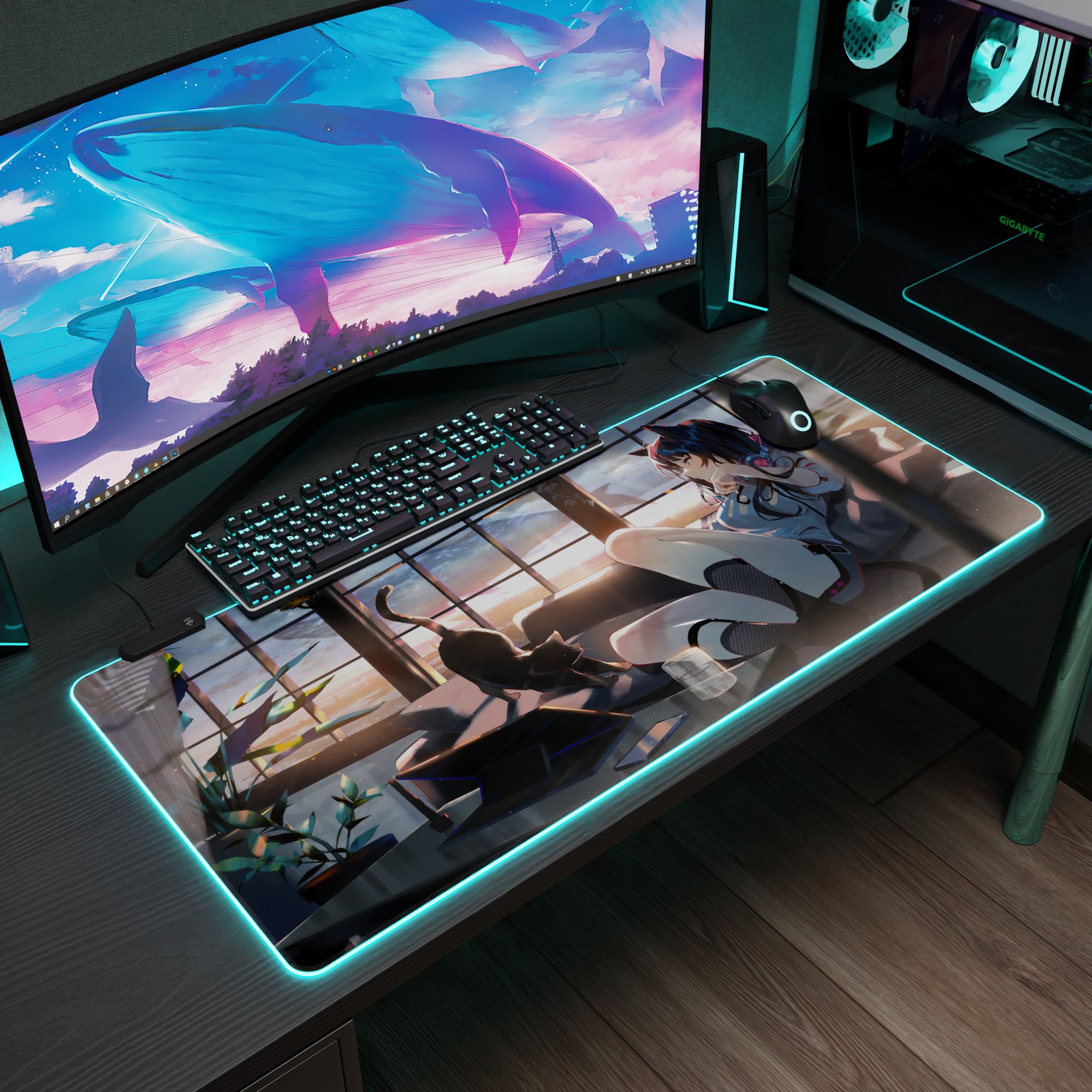 Купить Игровой коврик для мыши CatGirl 6 с RGB подсветкой